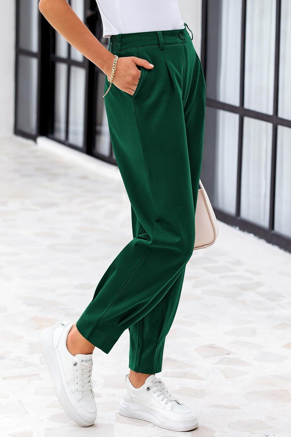 PRETTYGARDEN Womens Dress Pants Business Casual 2025 Trendy High Waisted Ankle Length Dressy Trousers Slacks Work Clothes(Dark Green)