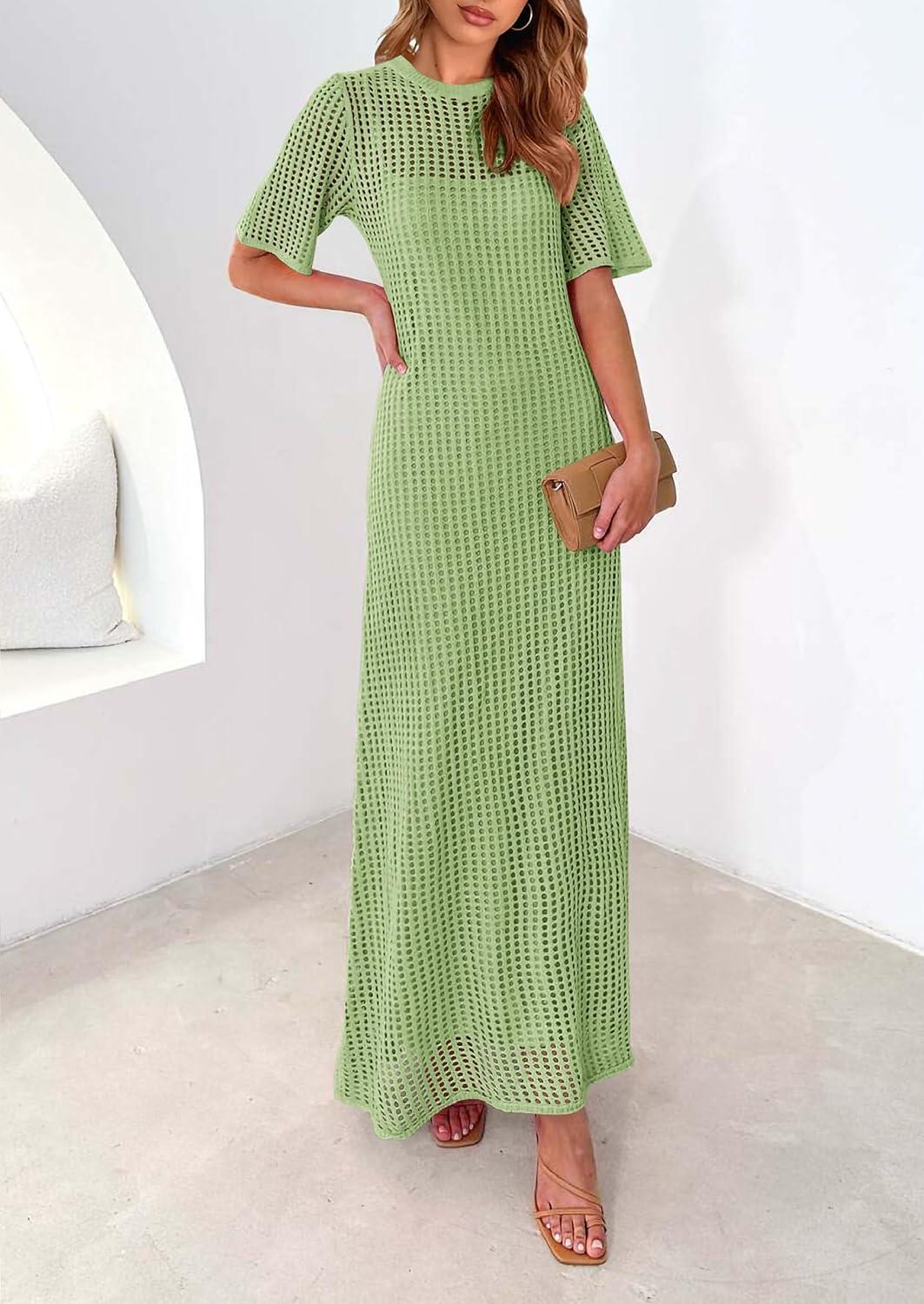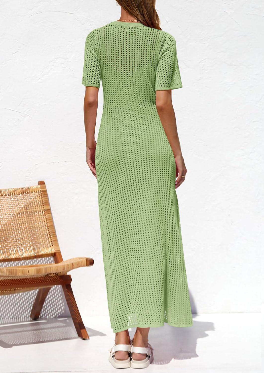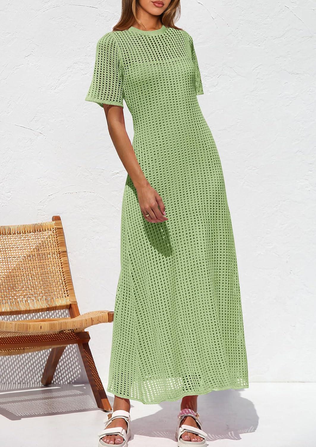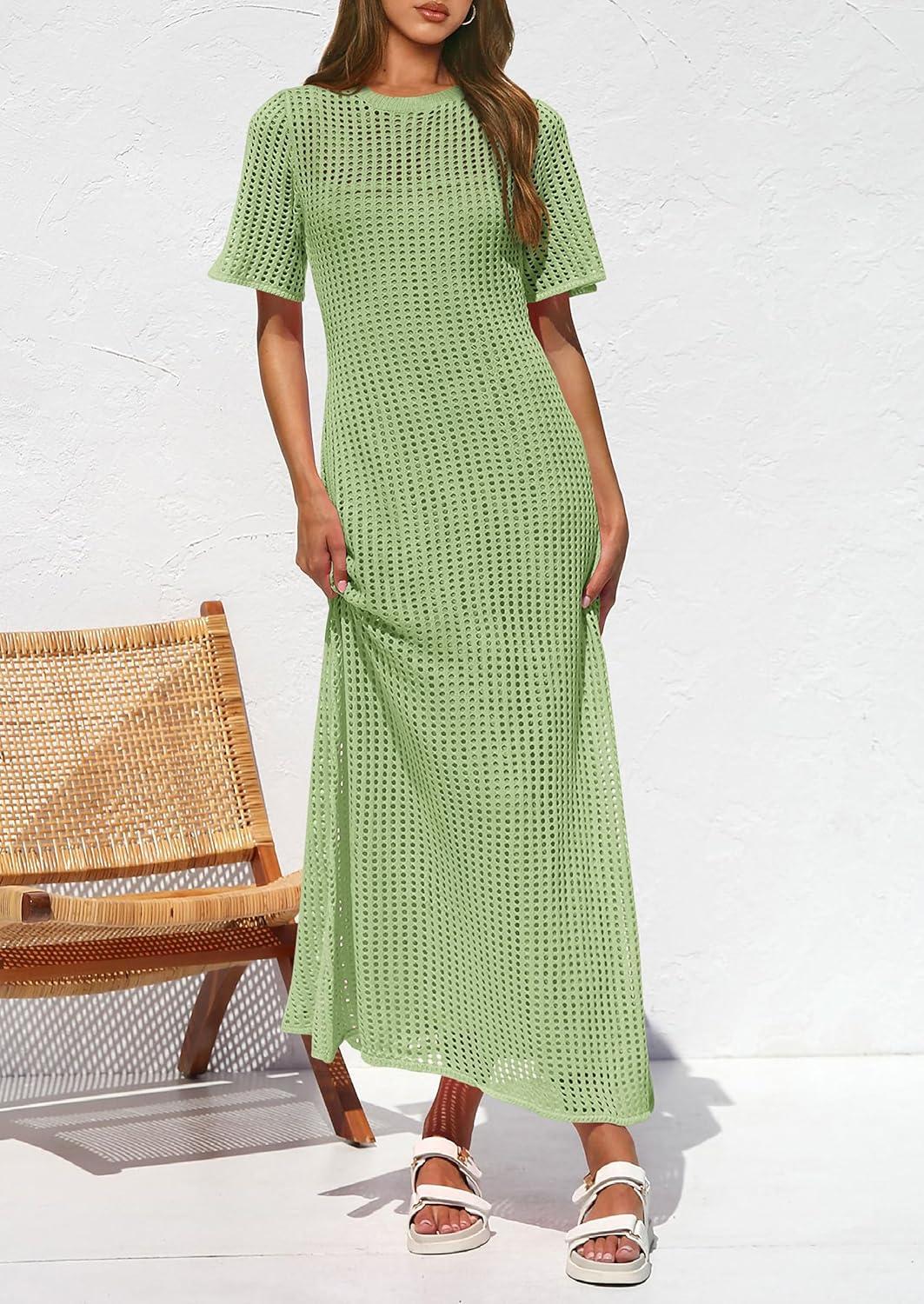 PRETTYGARDEN Womens Eyelet Cover Up Dress 2025 Summer Vacation Resort Maxi Dresses Beach Short Sleeve Hollow Out Sundress(Mint Green)