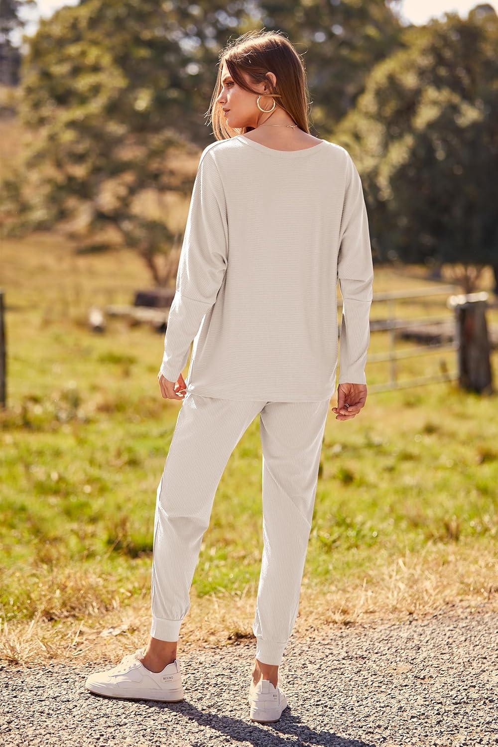 PRETTYGARDEN Women's Fall 2 Piece Lounge Set Long Sleeve Tops Ribbed Pants Spring Matching Sweatsuit Travel Outfits Clothes(Apricot)