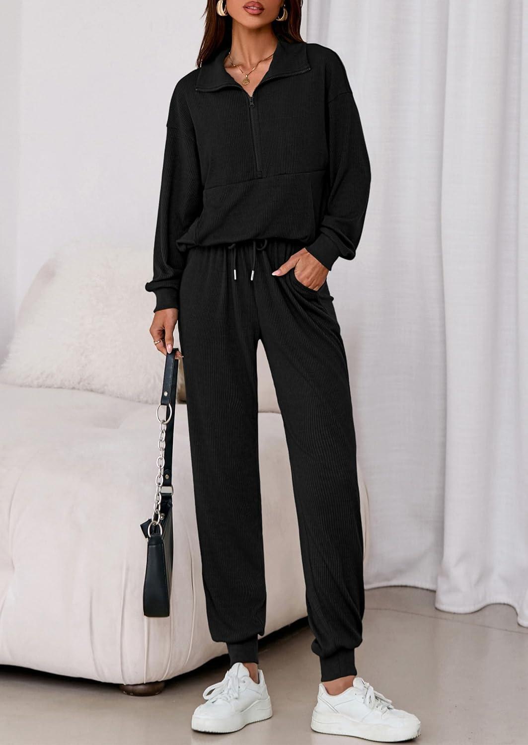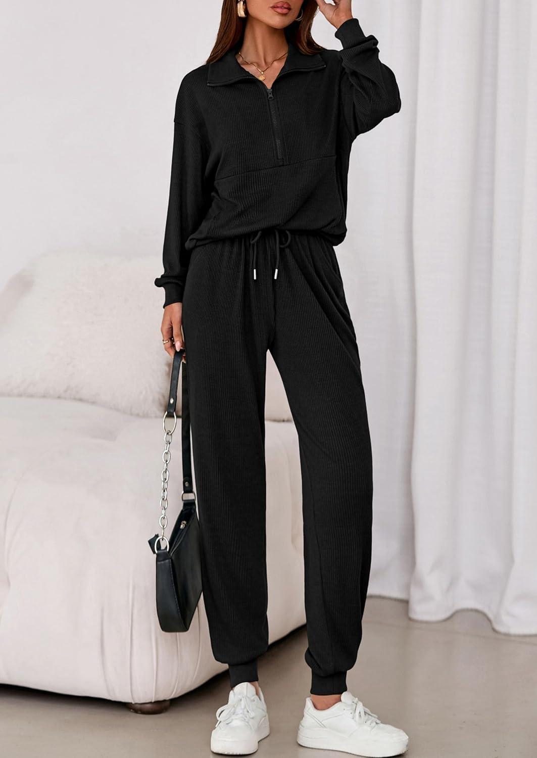 PRETTYGARDEN Women’s Fall 2 Piece Lounge Sets Zip Up Sweatshirt Jogger Pants Sweat Track Suits Travel Outfit Winter Clothing(Black)