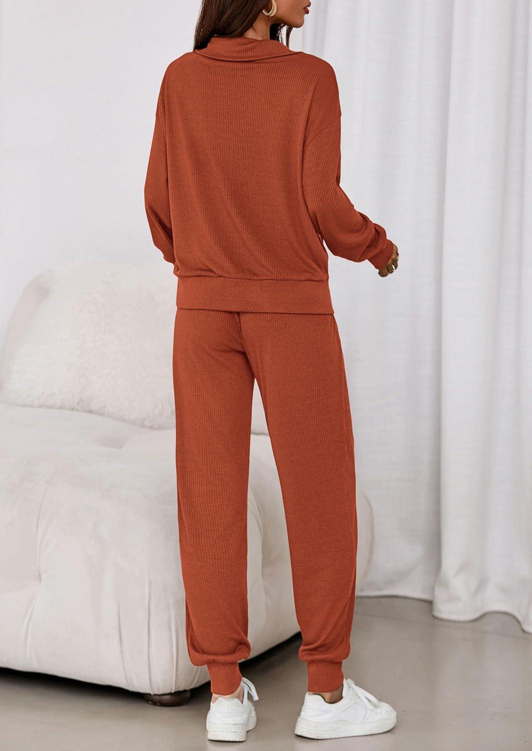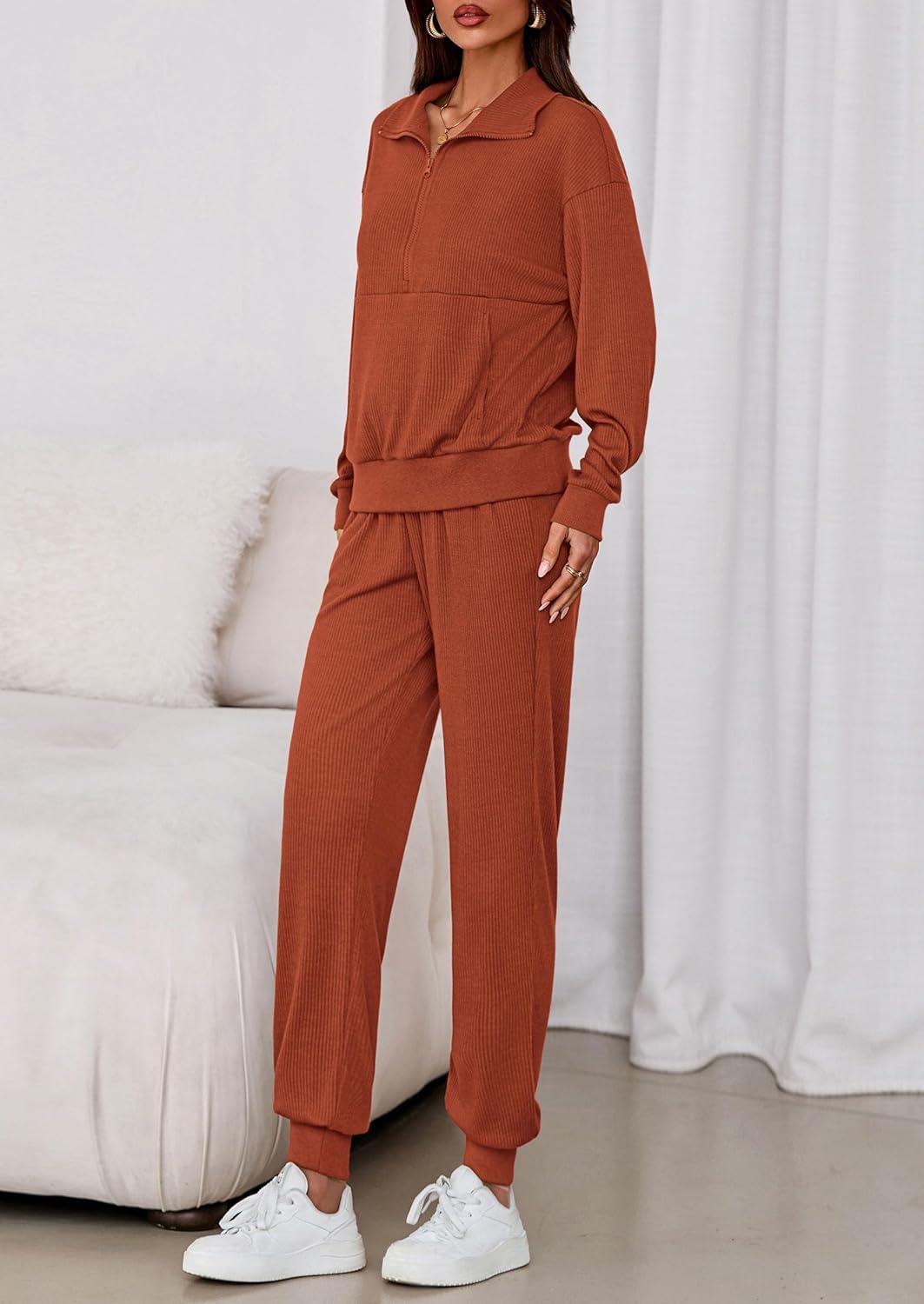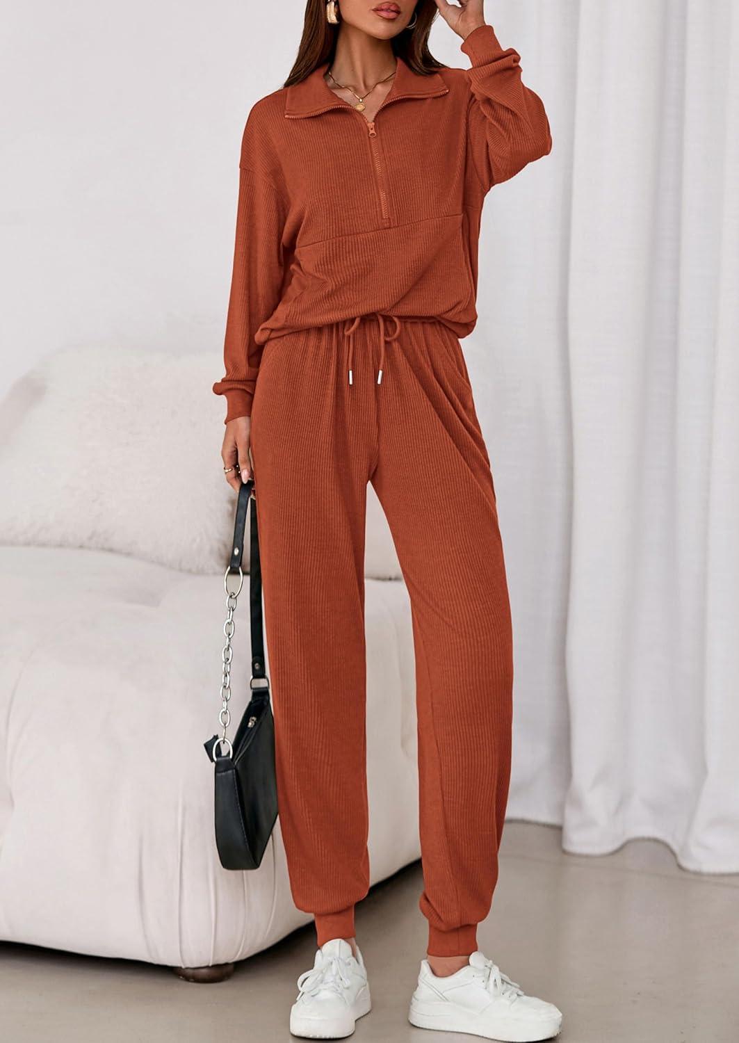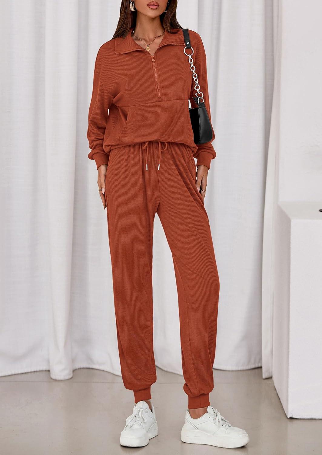 PRETTYGARDEN Women’s Fall 2 Piece Lounge Sets Zip Up Sweatshirt Jogger Pants Sweat Track Suits Travel Outfit Winter Clothing(Brick Red)
