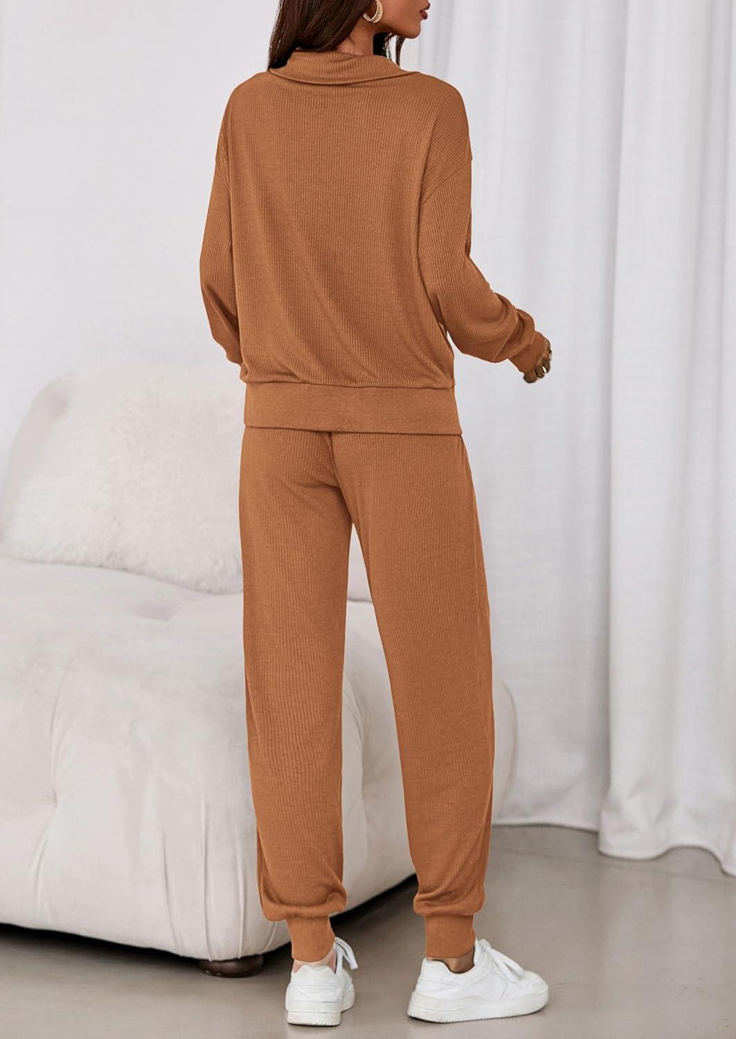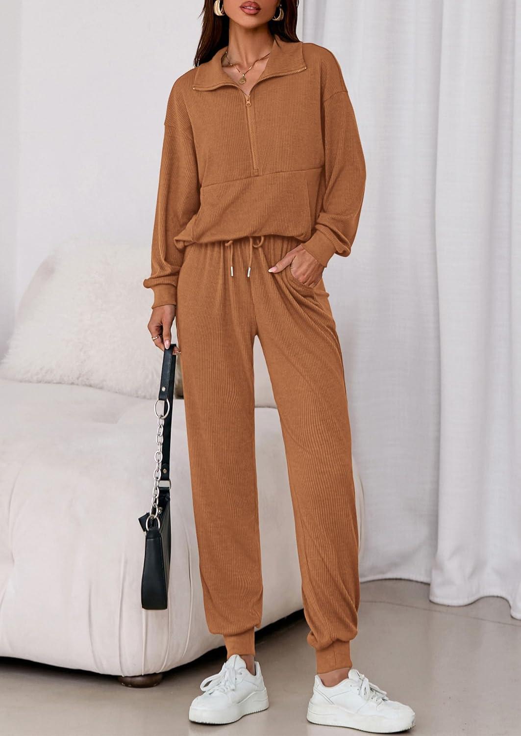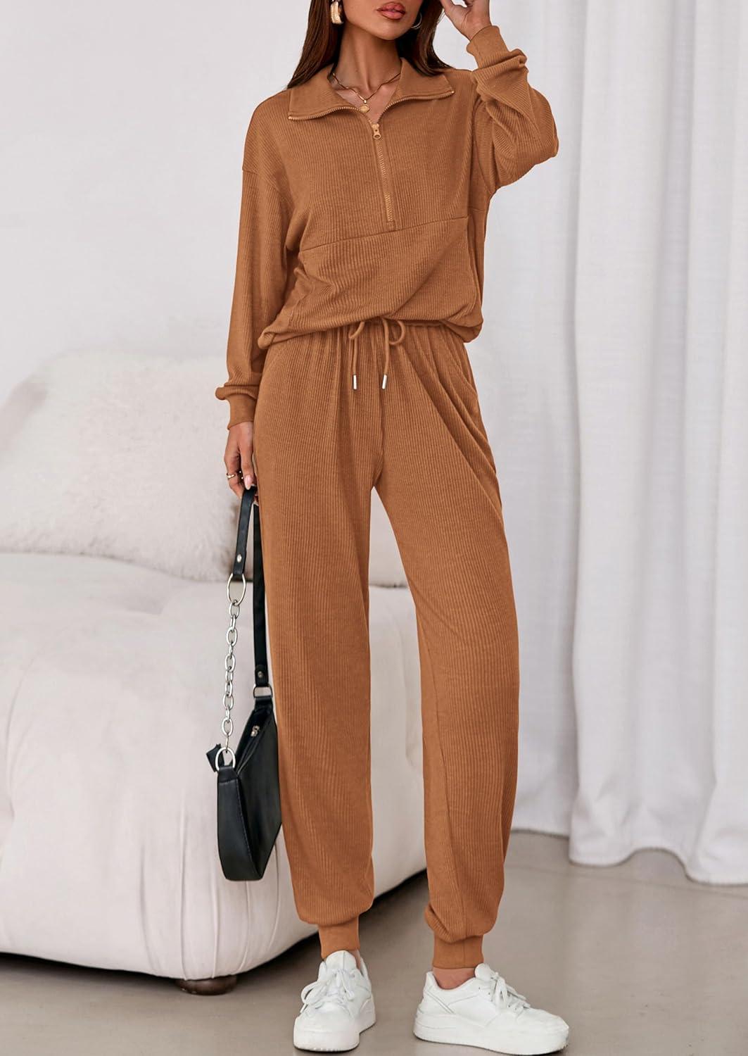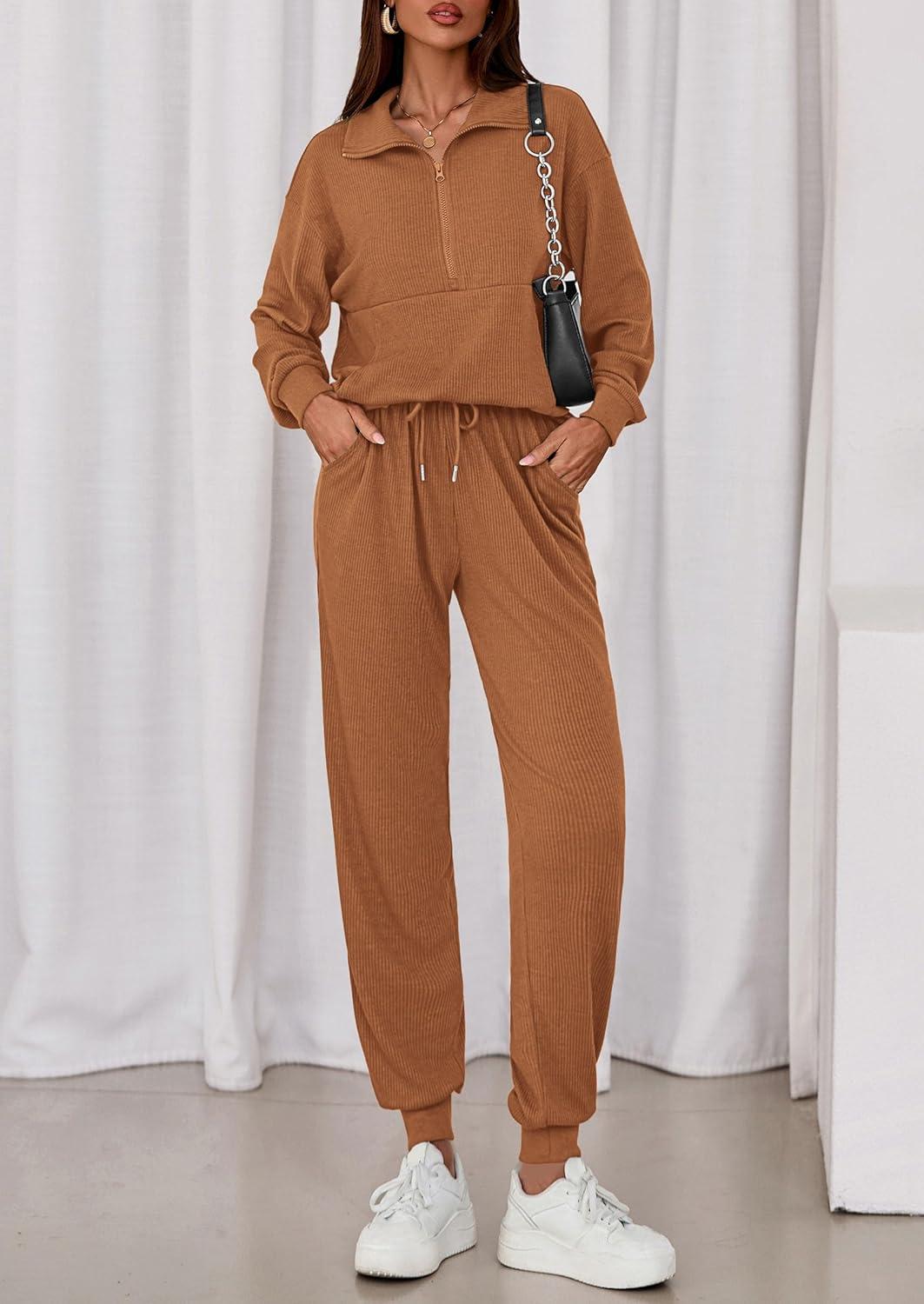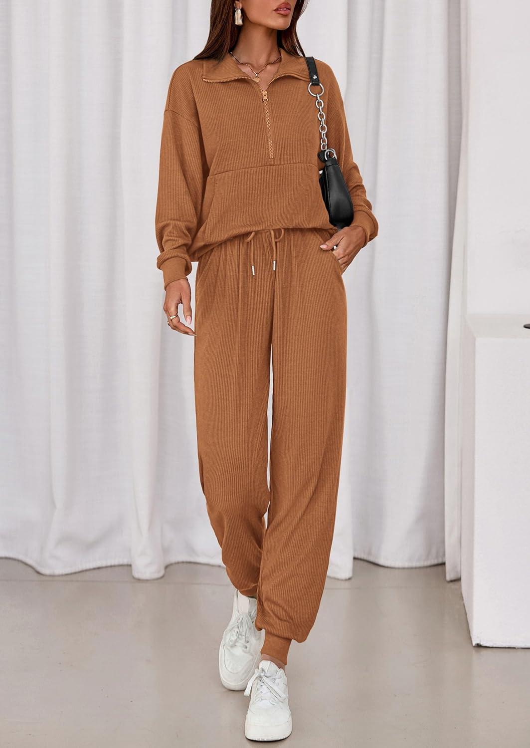 PRETTYGARDEN Women’s Fall 2 Piece Lounge Sets Zip Up Sweatshirt Jogger Pants Sweat Track Suits Travel Outfit Winter Clothing(Dark Khaki)