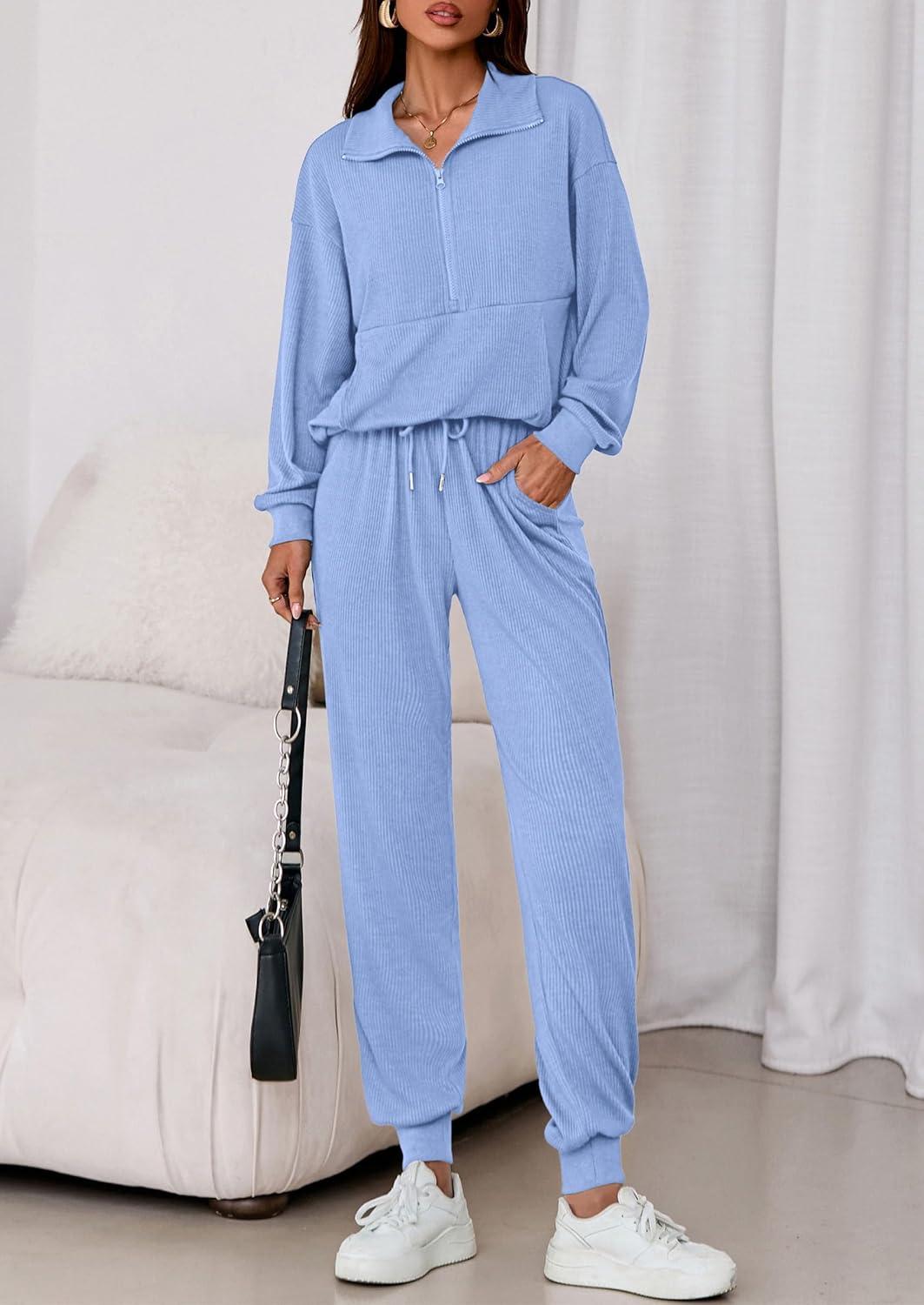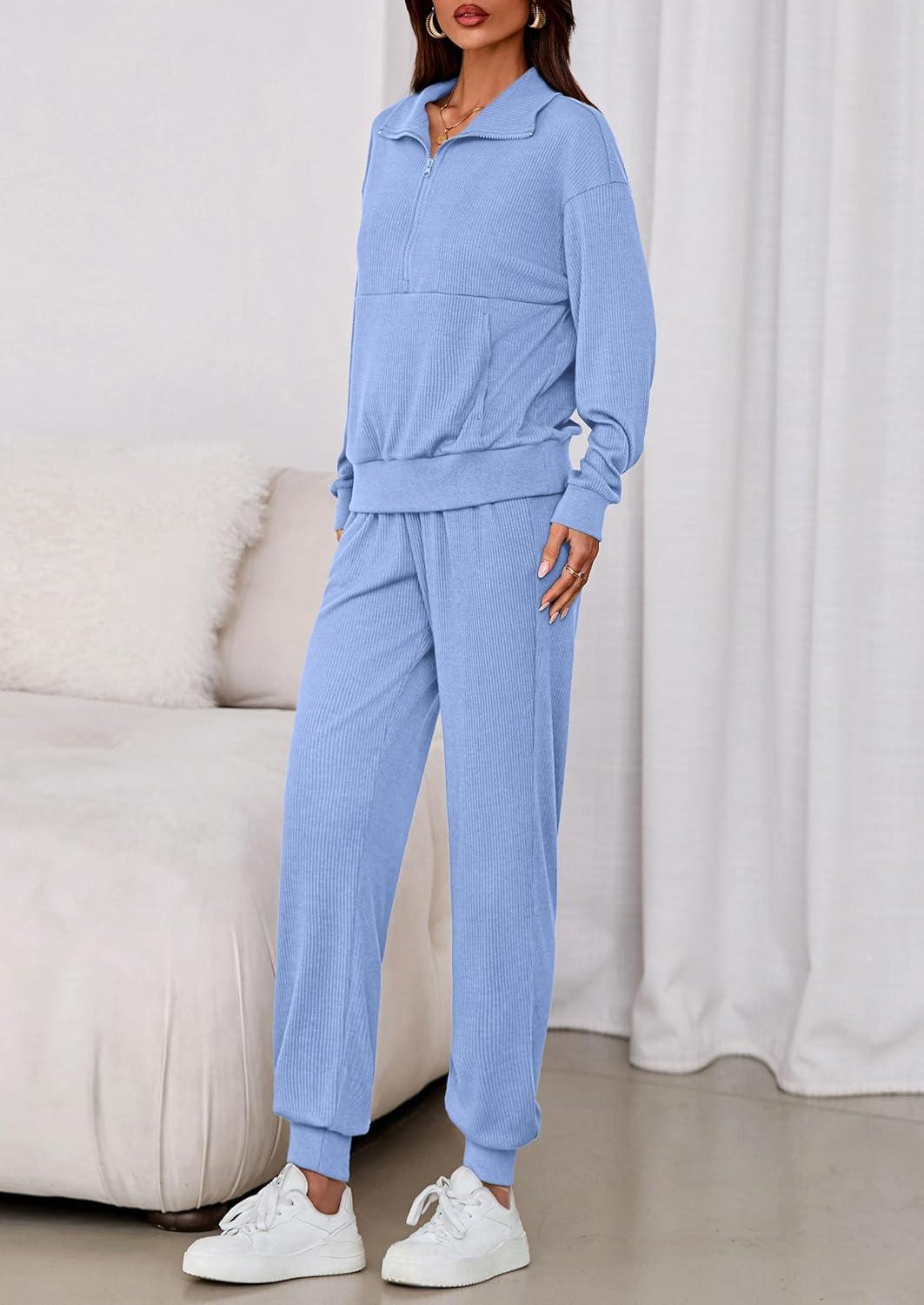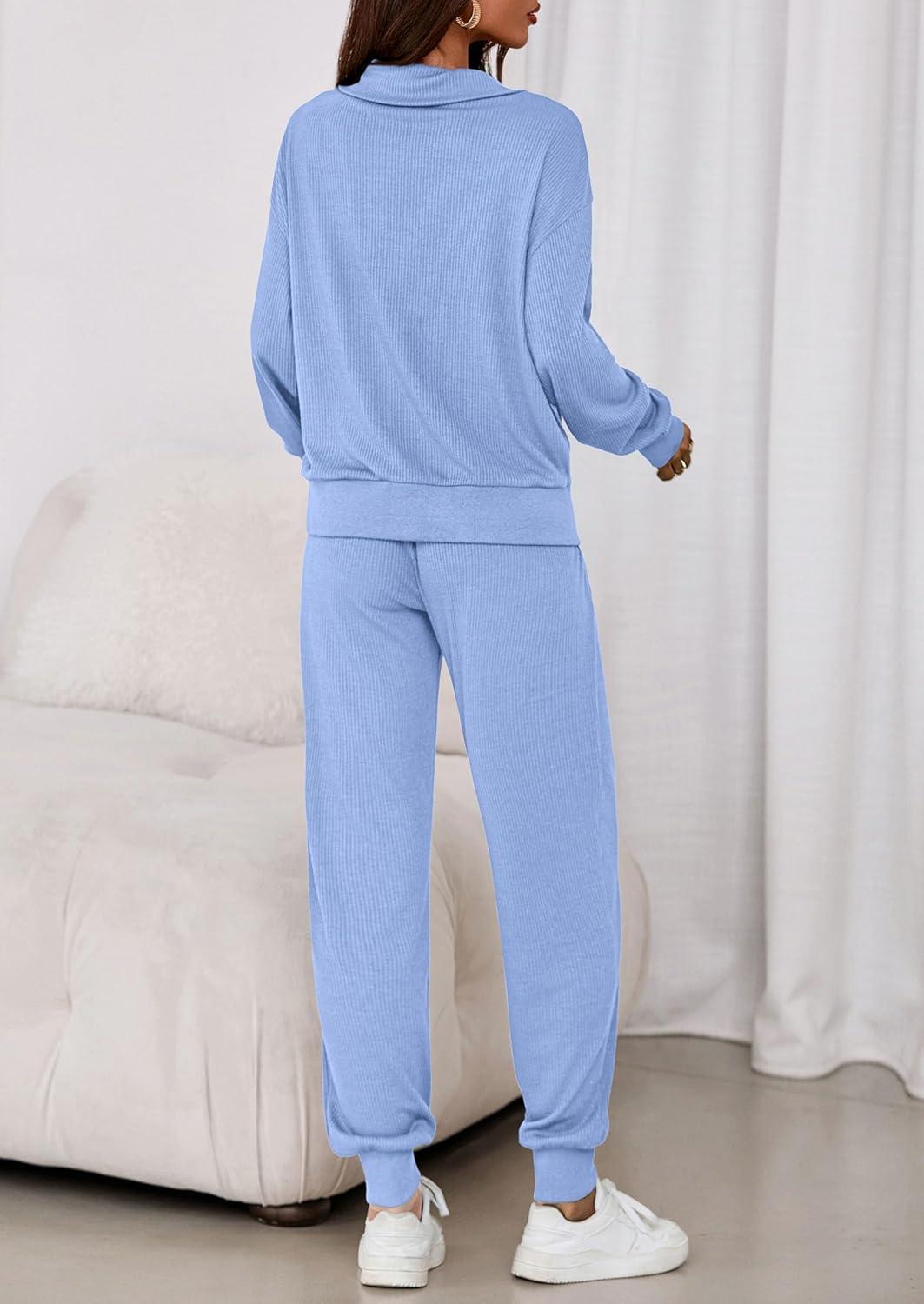 PRETTYGARDEN Women’s Fall 2 Piece Lounge Sets Zip Up Sweatshirt Jogger Pants Sweat Track Suits Travel Outfit Winter Clothing(Lake Blue)