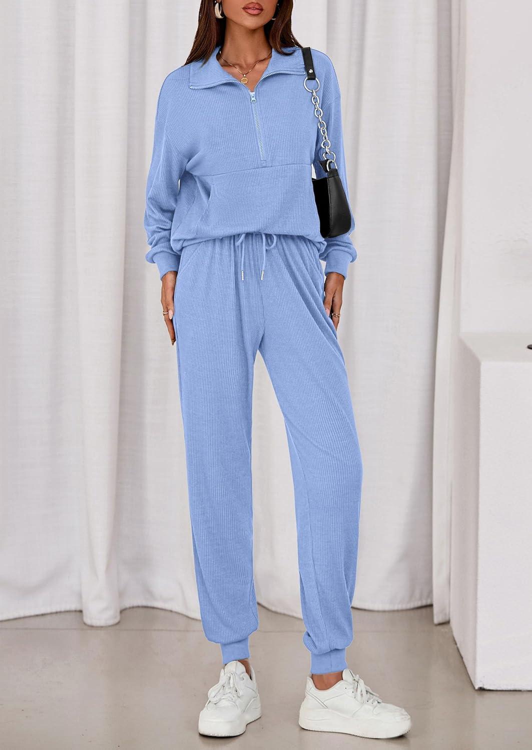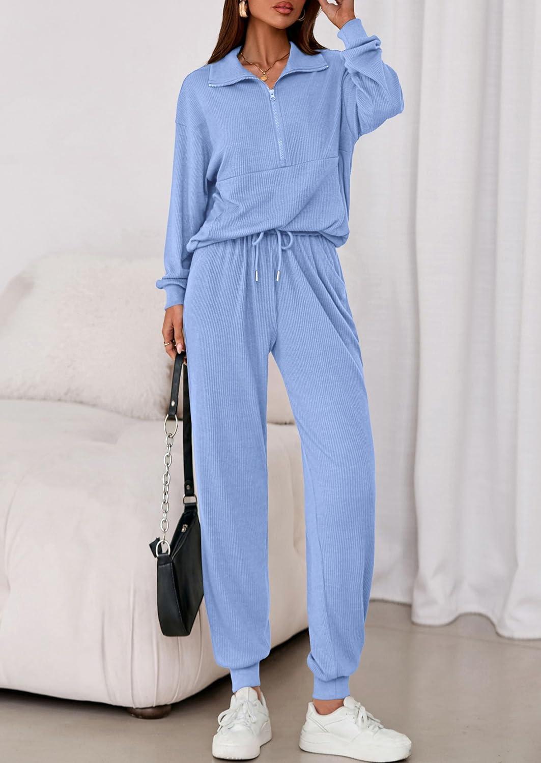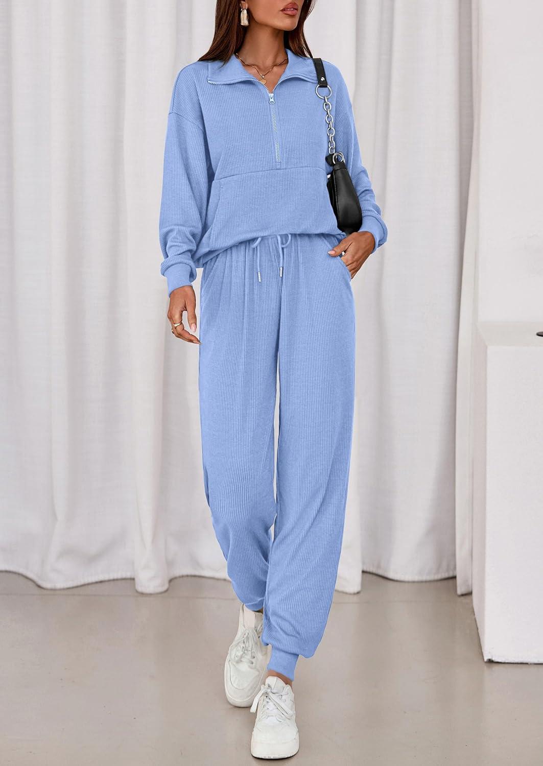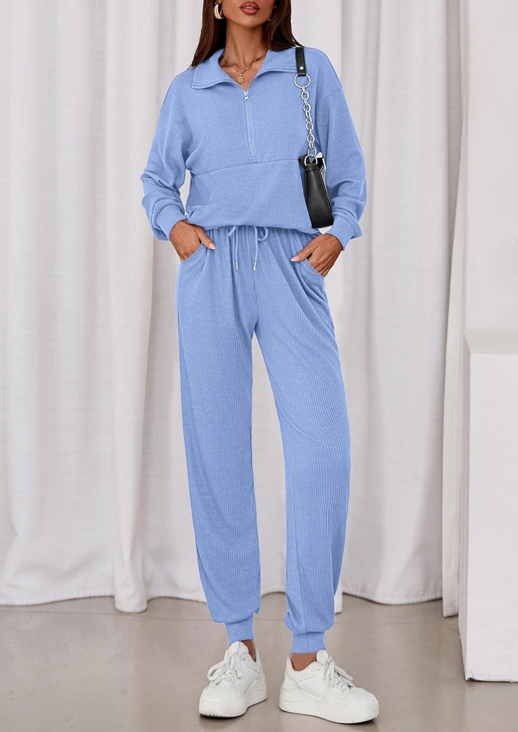 PRETTYGARDEN Women’s Fall 2 Piece Lounge Sets Zip Up Sweatshirt Jogger Pants Sweat Track Suits Travel Outfit Winter Clothing(Lake Blue)