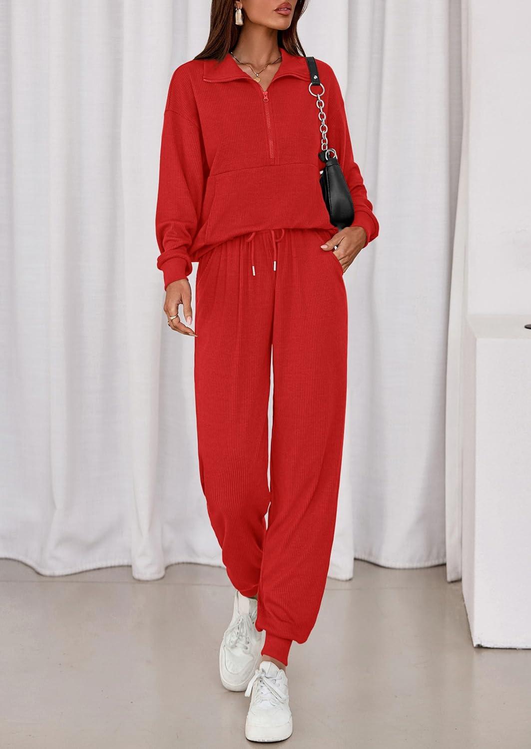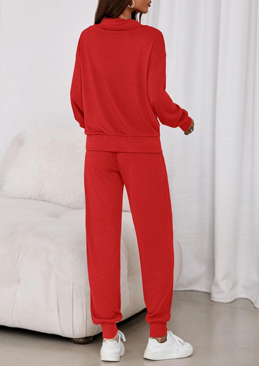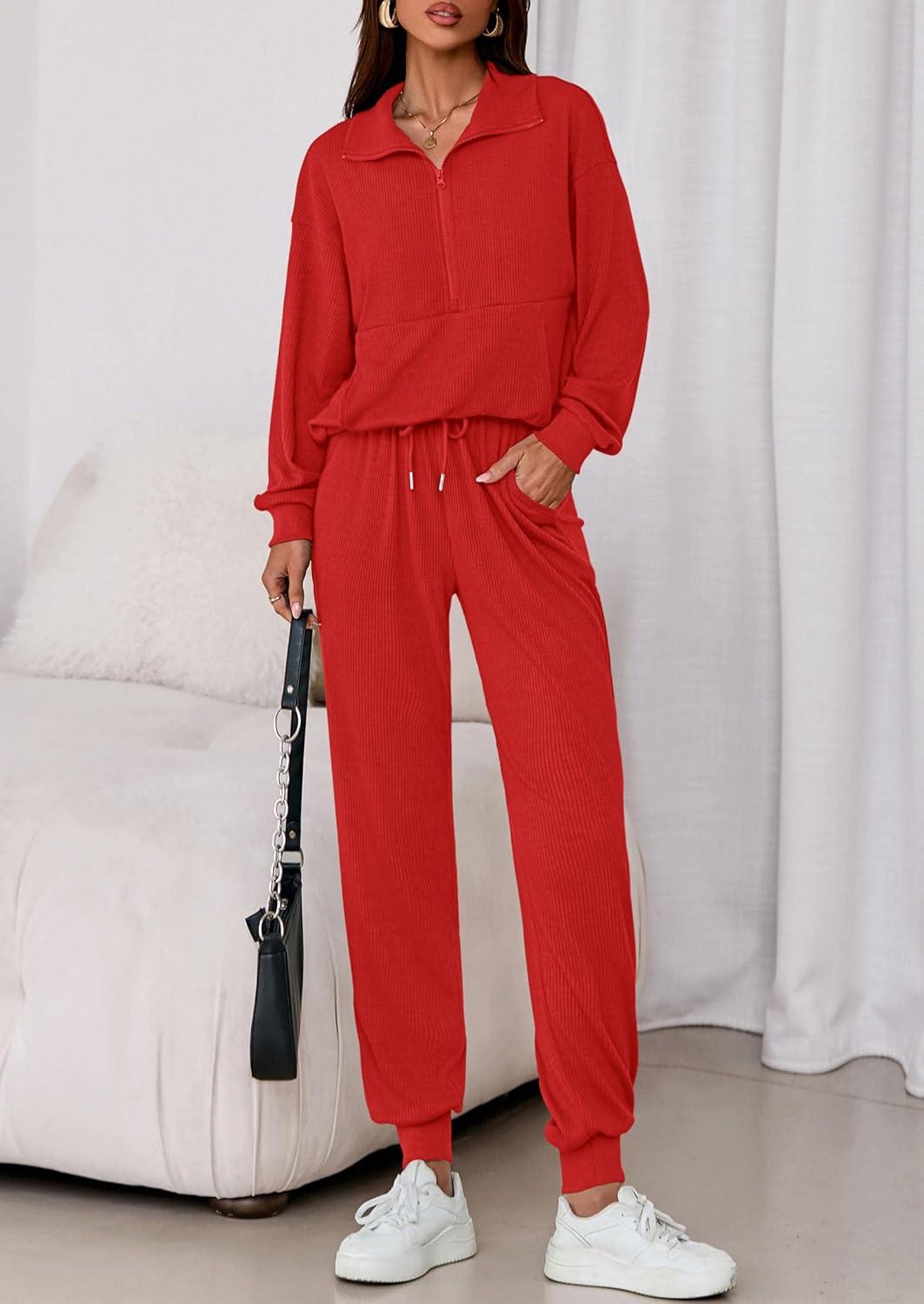 PRETTYGARDEN Women’s Fall 2 Piece Lounge Sets Zip Up Sweatshirt Jogger Pants Sweat Track Suits Travel Outfit Winter Clothing(Red)