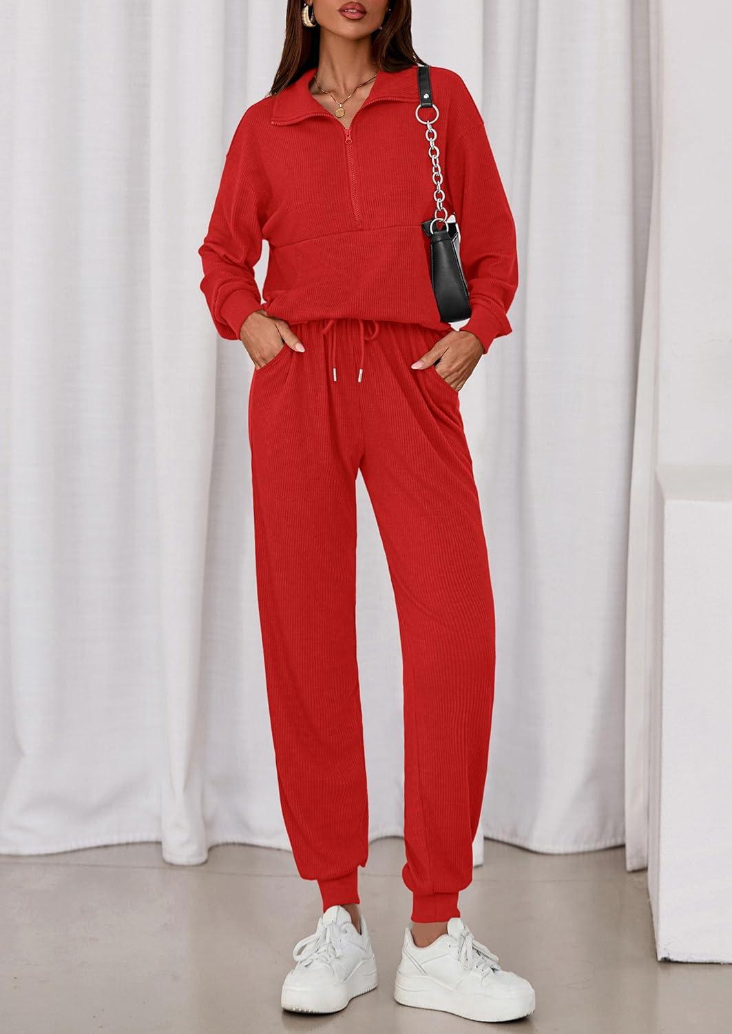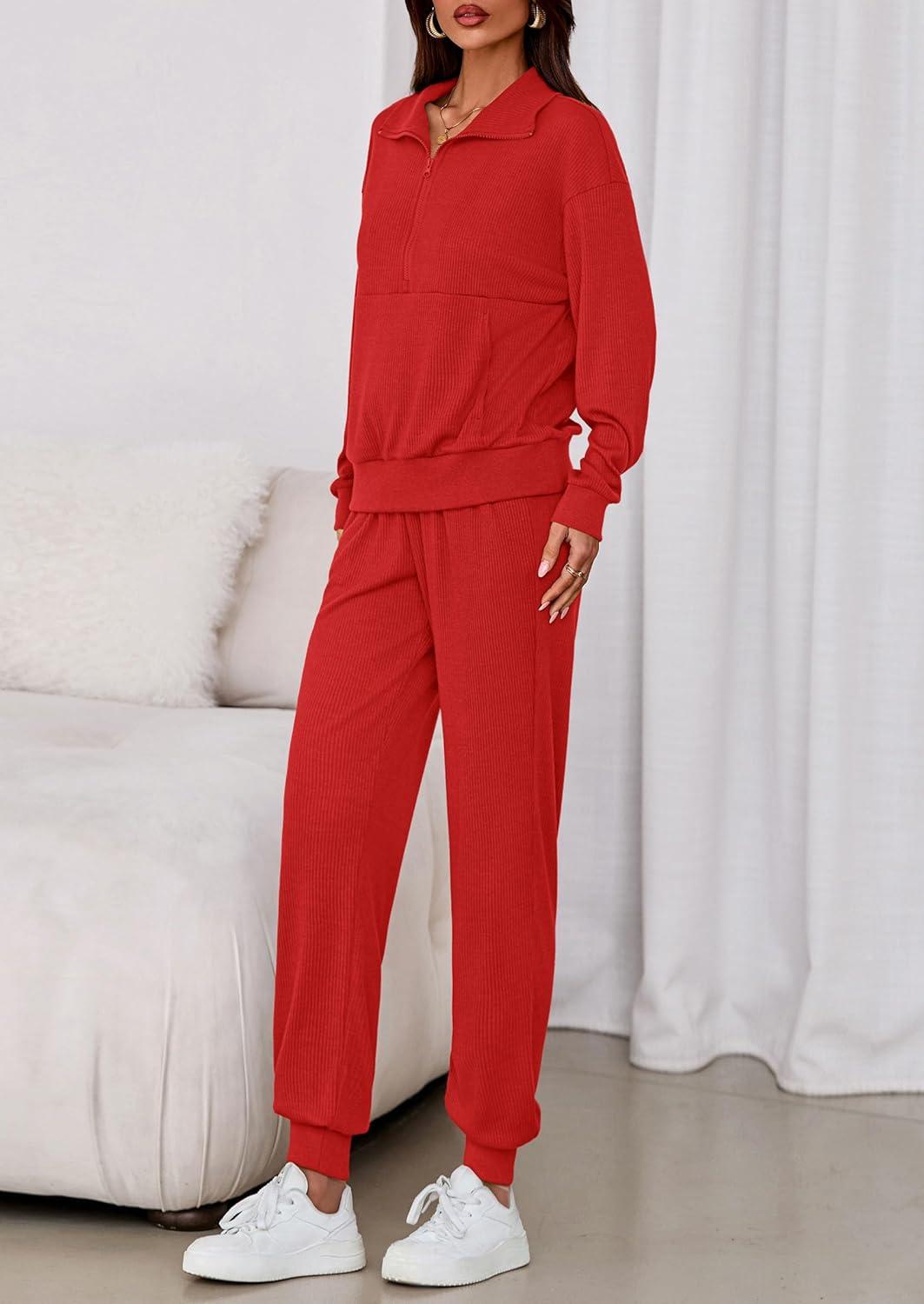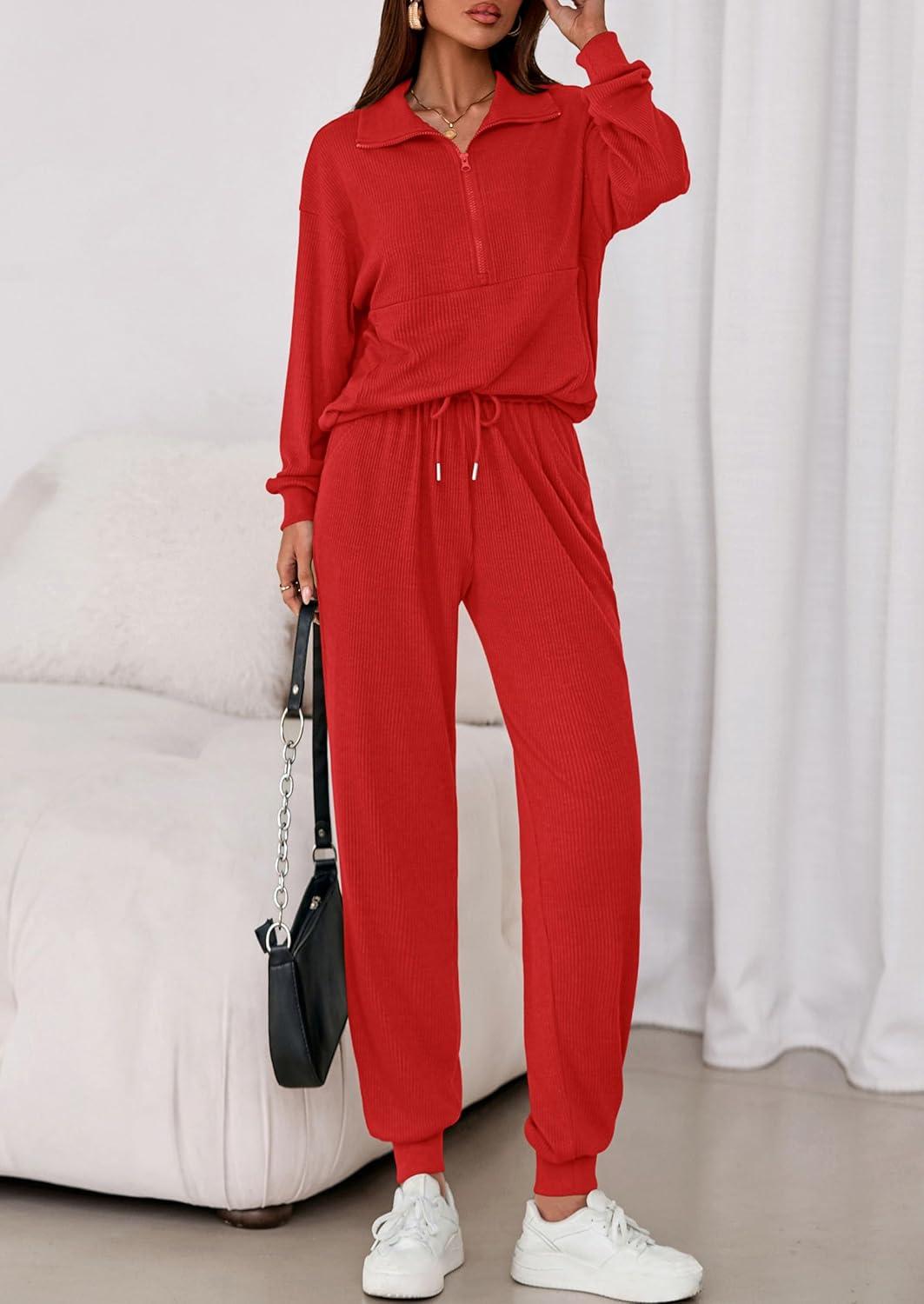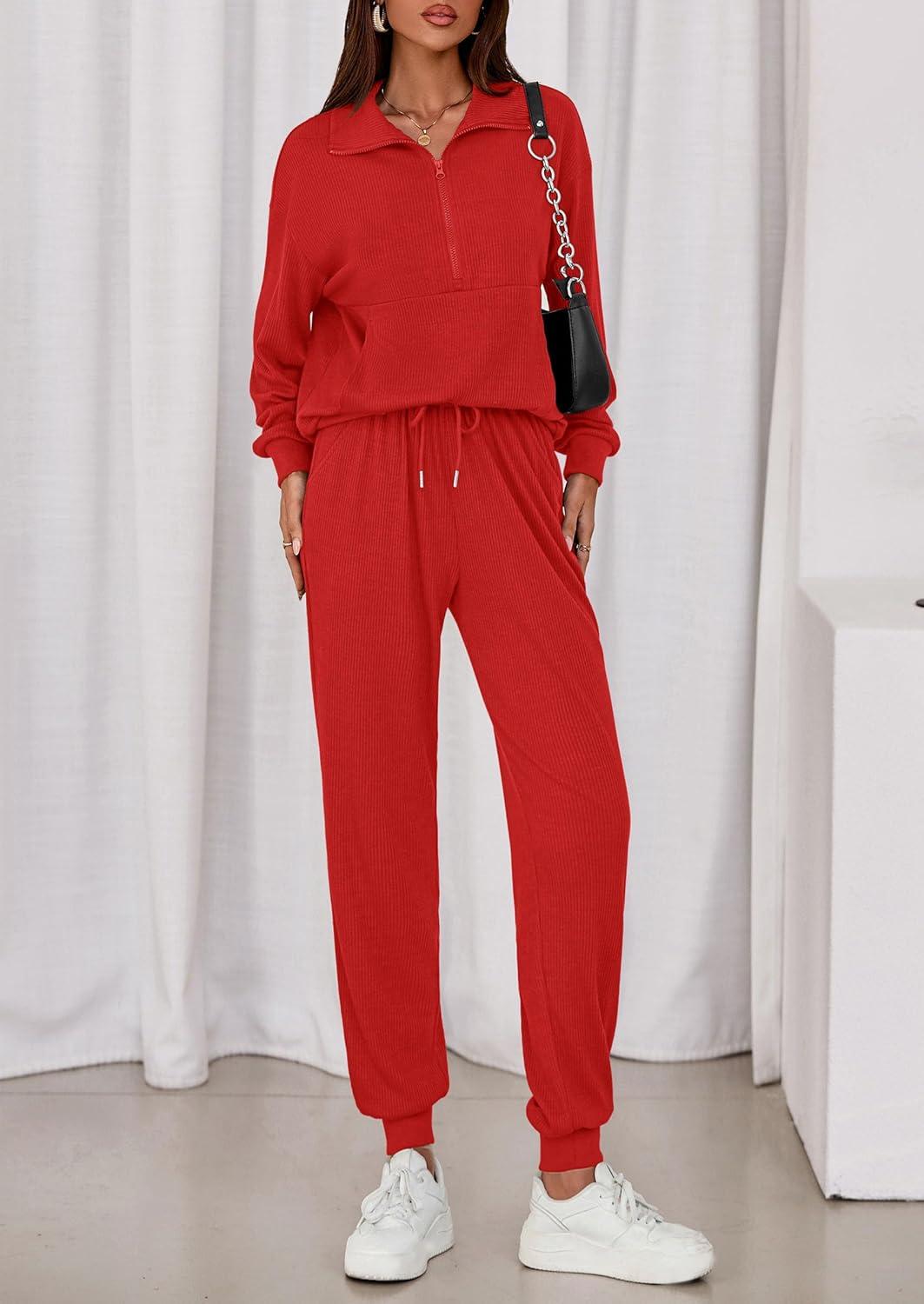 PRETTYGARDEN Women’s Fall 2 Piece Lounge Sets Zip Up Sweatshirt Jogger Pants Sweat Track Suits Travel Outfit Winter Clothing(Red)
