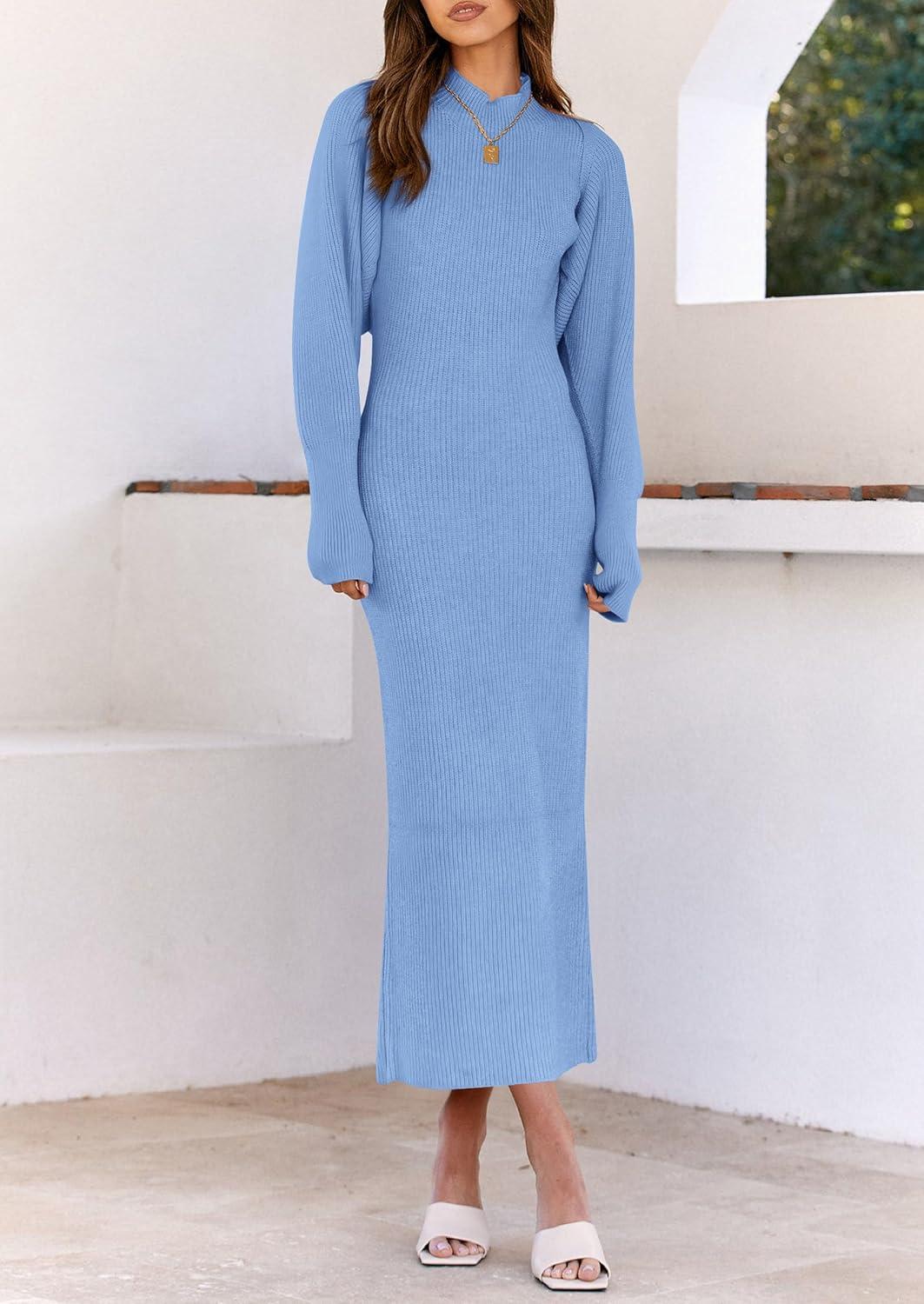 PRETTYGARDEN Women’s Fall 2 Piece Outfits Knit Long Sleeve Cropped Cardigan Pullover Sweater Maxi Dress Sets Winter Clothing(Light Blue)