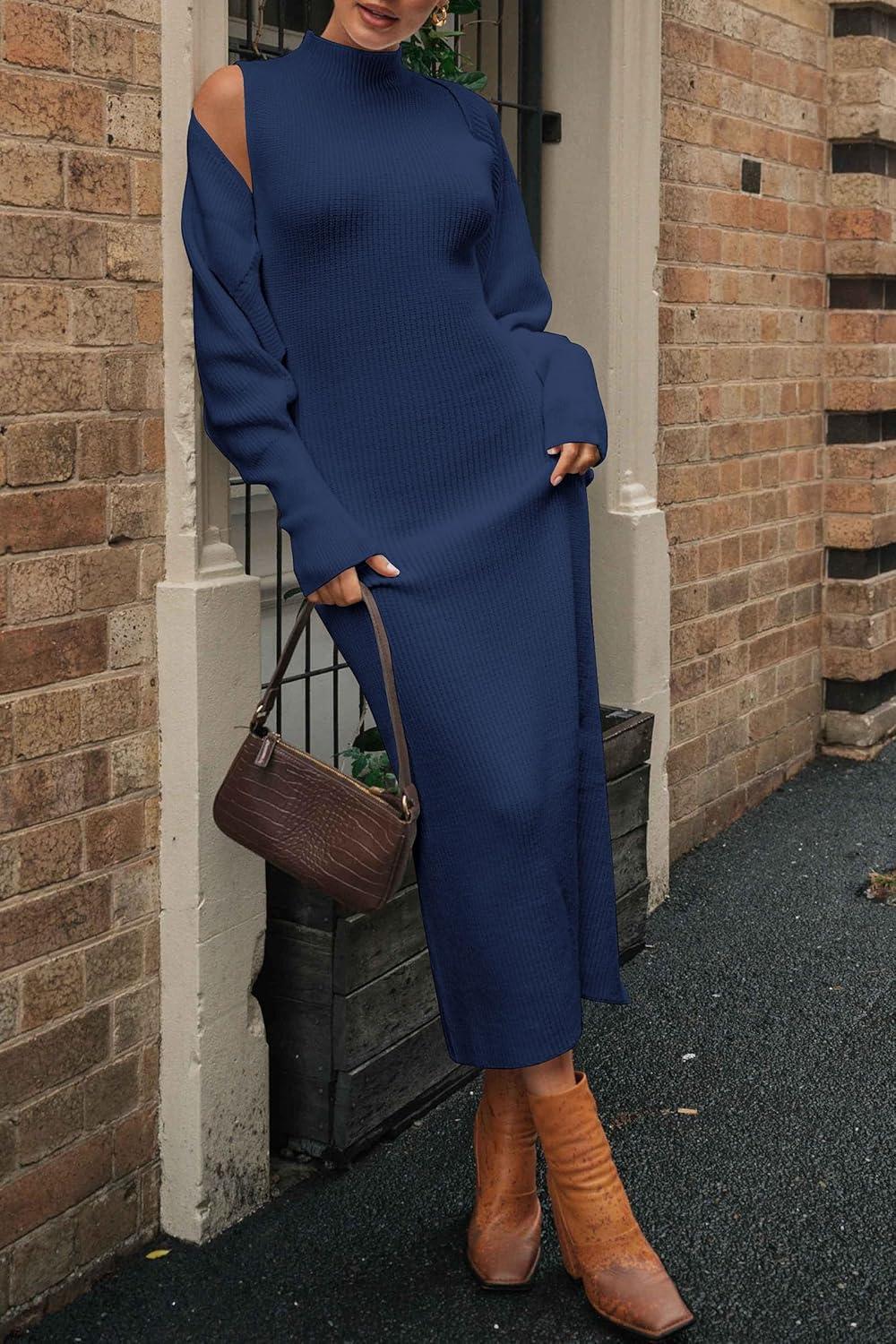 PRETTYGARDEN Women's Fall 2 Piece Outfits Knit Long Sleeve Cropped Cardigan Pullover Sweater Maxi Dress Sets Winter Clothing(Navy)