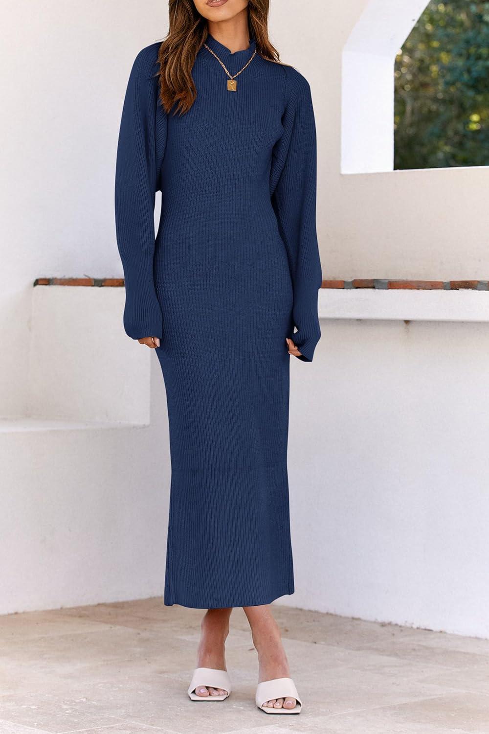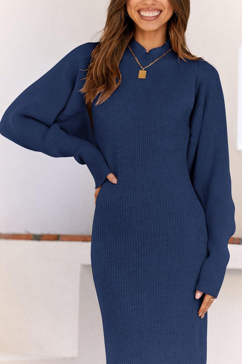 PRETTYGARDEN Women’s Fall 2 Piece Outfits Knit Long Sleeve Cropped Cardigan Pullover Sweater Maxi Dress Sets Winter Clothing(Navy)