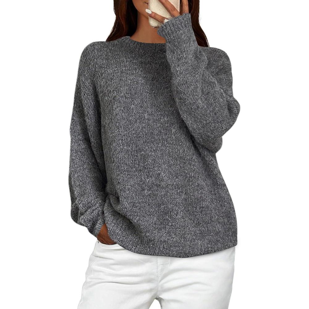 PRETTYGARDEN Womens Fall Long Sleeve Sweater Crew Neck Fuzzy Loose Fit Chunky Knit Oversized Pullover Sweaters Going Out Tops(Dark Grey)