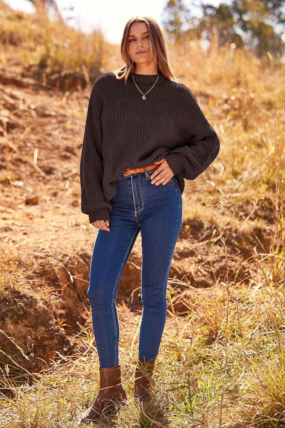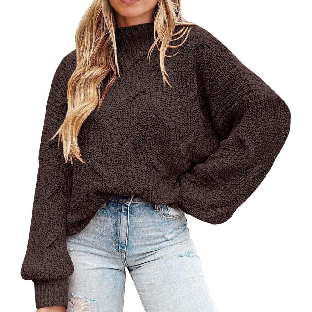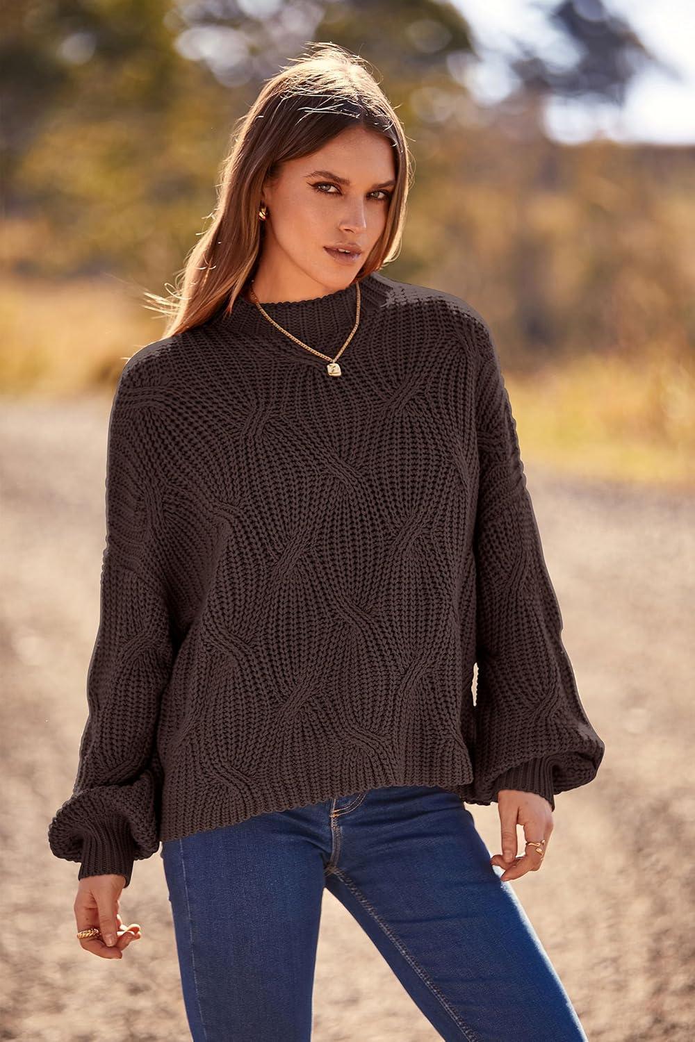 PRETTYGARDEN Women’s Fall Oversized Pullover Sweaters Casual Crewneck Long Sleeve Chunky Cable Knit Tops Winter Clothing(Coffee)
