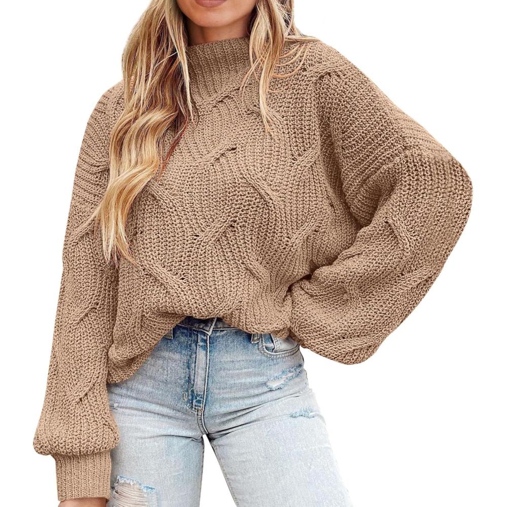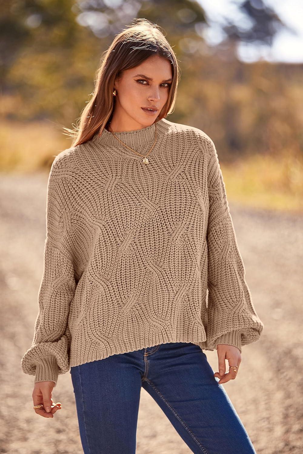 PRETTYGARDEN Women's Fall Oversized Pullover Sweaters Casual Crewneck Long Sleeve Chunky Cable Knit Tops Winter Clothing(Dark Apricot)