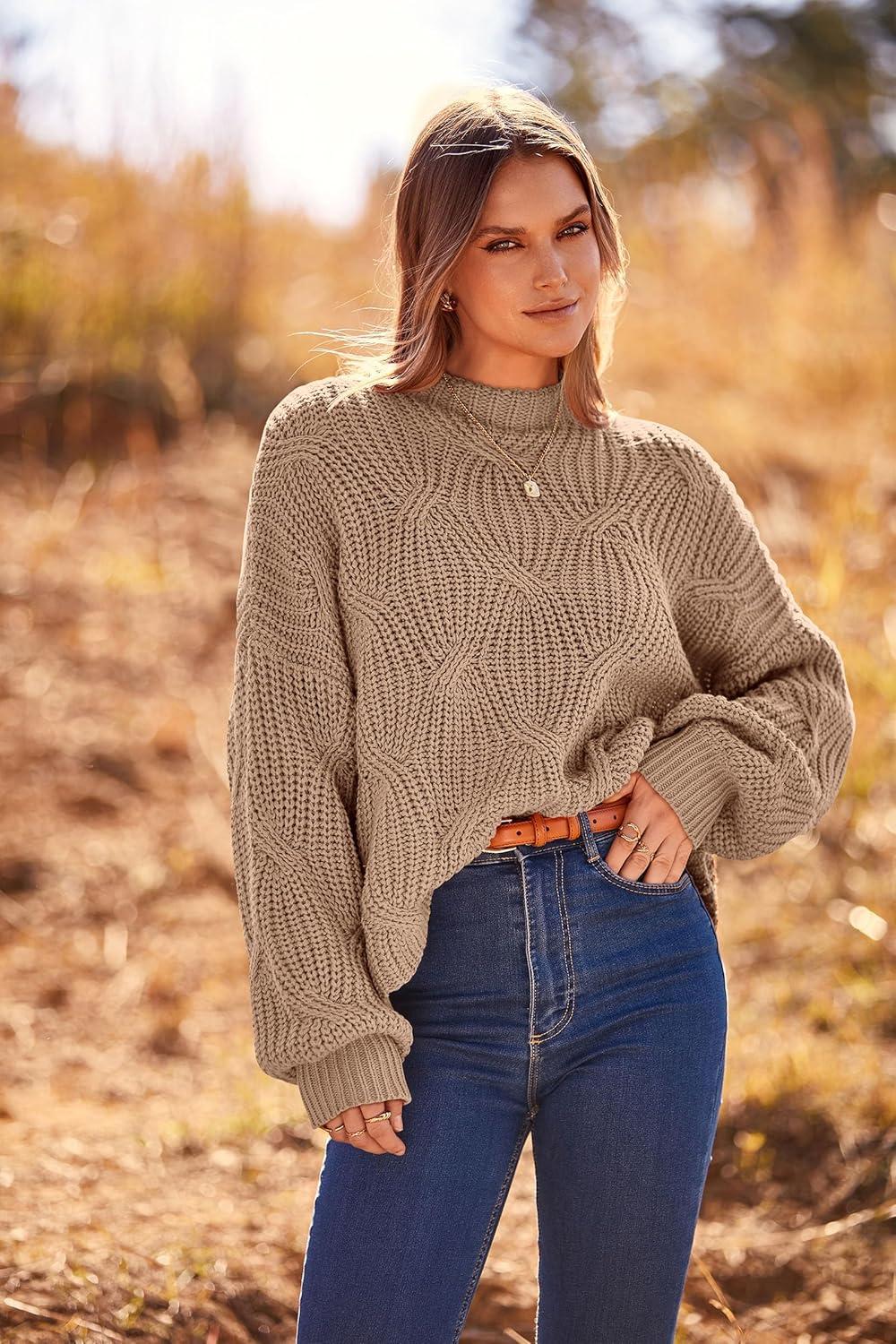 PRETTYGARDEN Women’s Fall Oversized Pullover Sweaters Casual Crewneck Long Sleeve Chunky Cable Knit Tops Winter Clothing(Coffee)