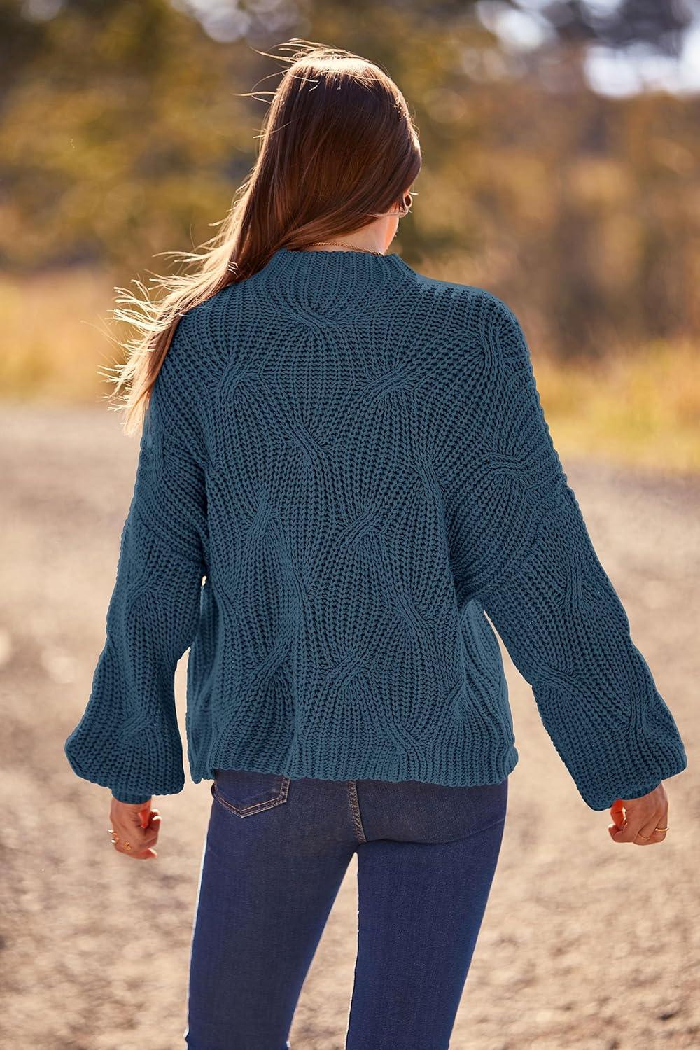 PRETTYGARDEN Women's Fall Oversized Pullover Sweaters Casual Crewneck Long Sleeve Chunky Cable Knit Tops Winter Clothing(Grey Blue)