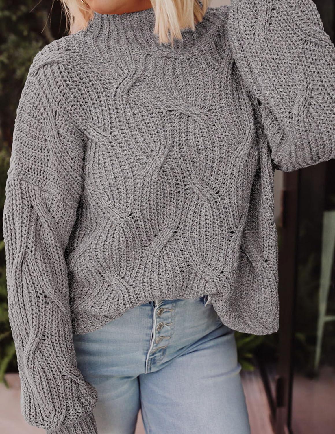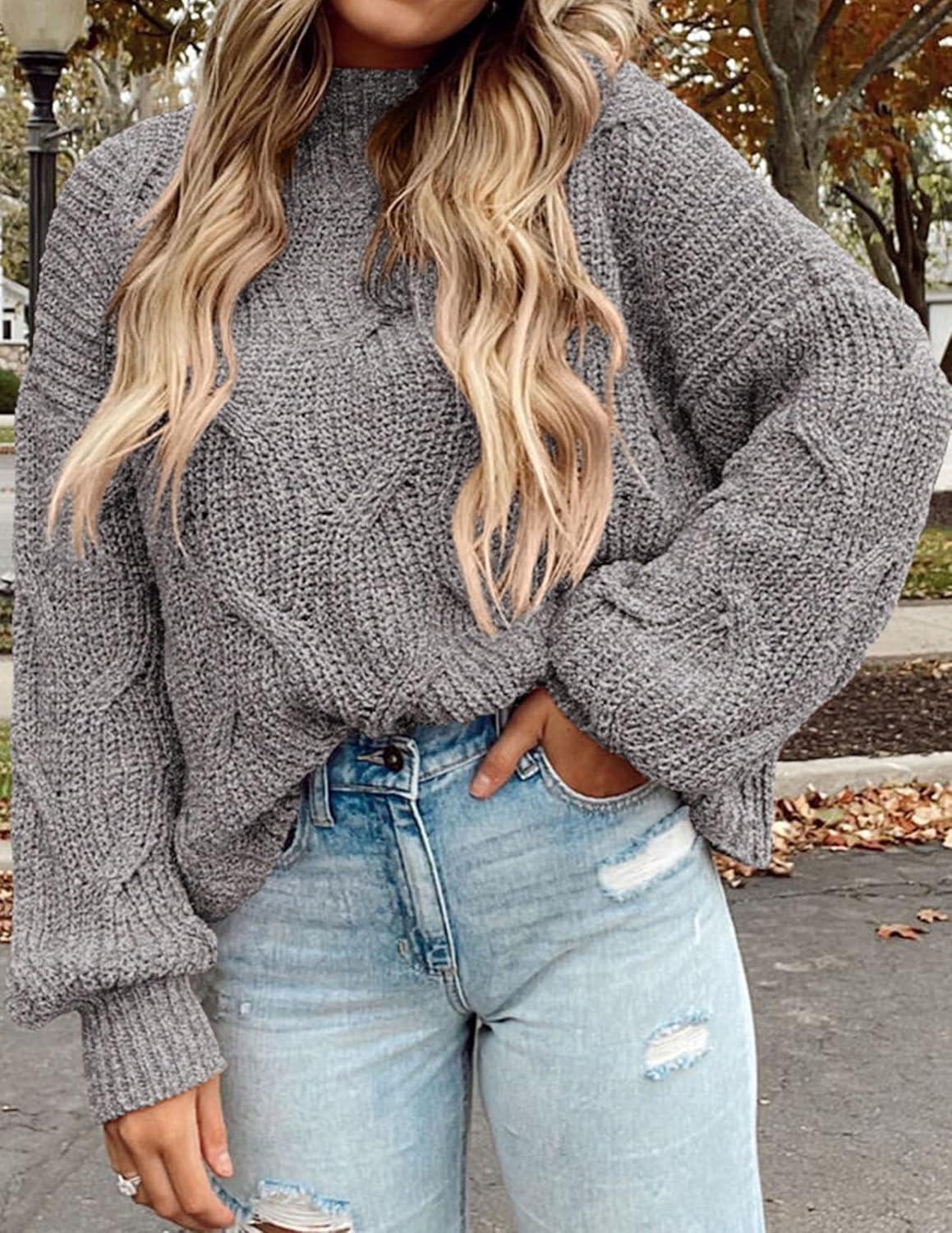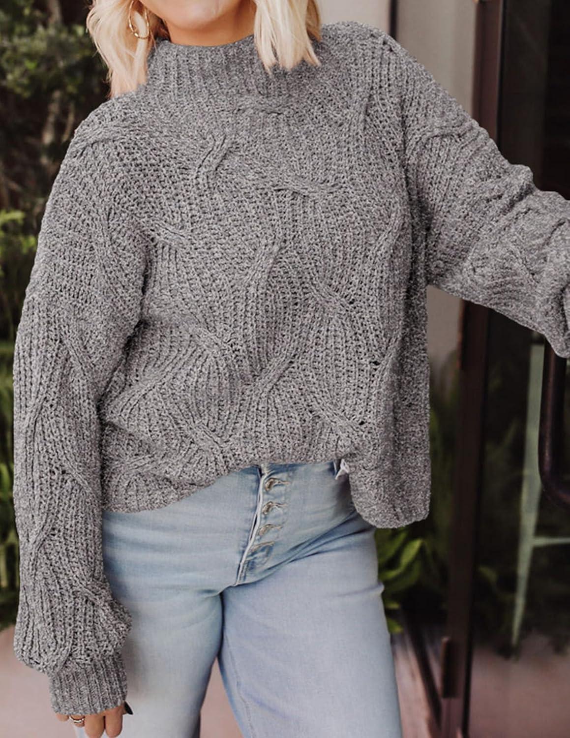PRETTYGARDEN Women's Fall Oversized Pullover Sweaters Casual Crewneck Long Sleeve Chunky Cable Knit Tops Winter Clothing(Grey)