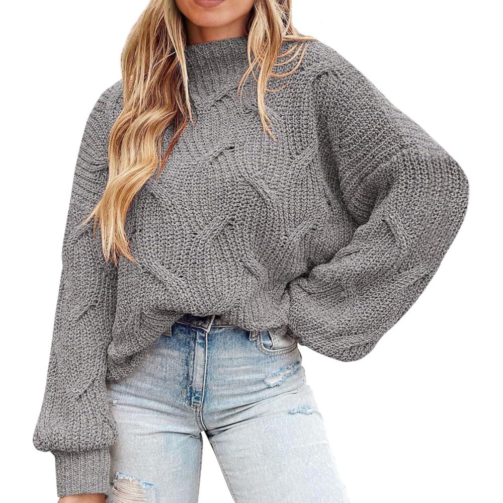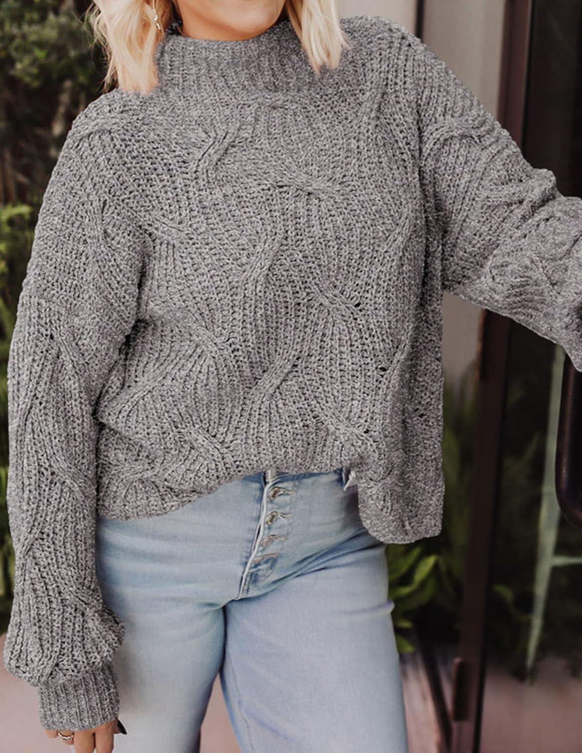 PRETTYGARDEN Women’s Fall Oversized Pullover Sweaters Casual Crewneck Long Sleeve Chunky Cable Knit Tops Winter Clothing(Grey)