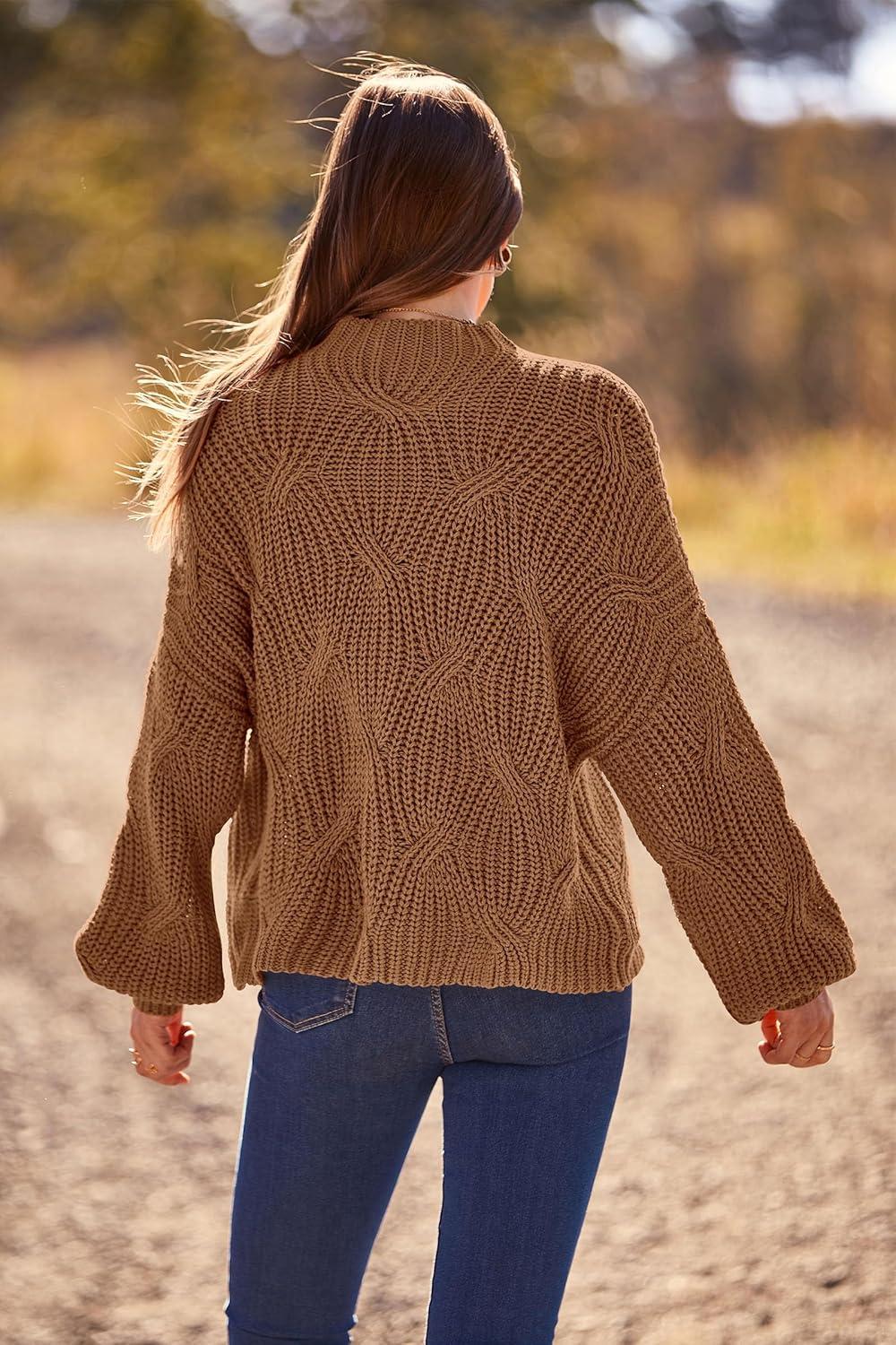 PRETTYGARDEN Women’s Fall Oversized Pullover Sweaters Casual Crewneck Long Sleeve Chunky Cable Knit Tops Winter Clothing(Khaki)
