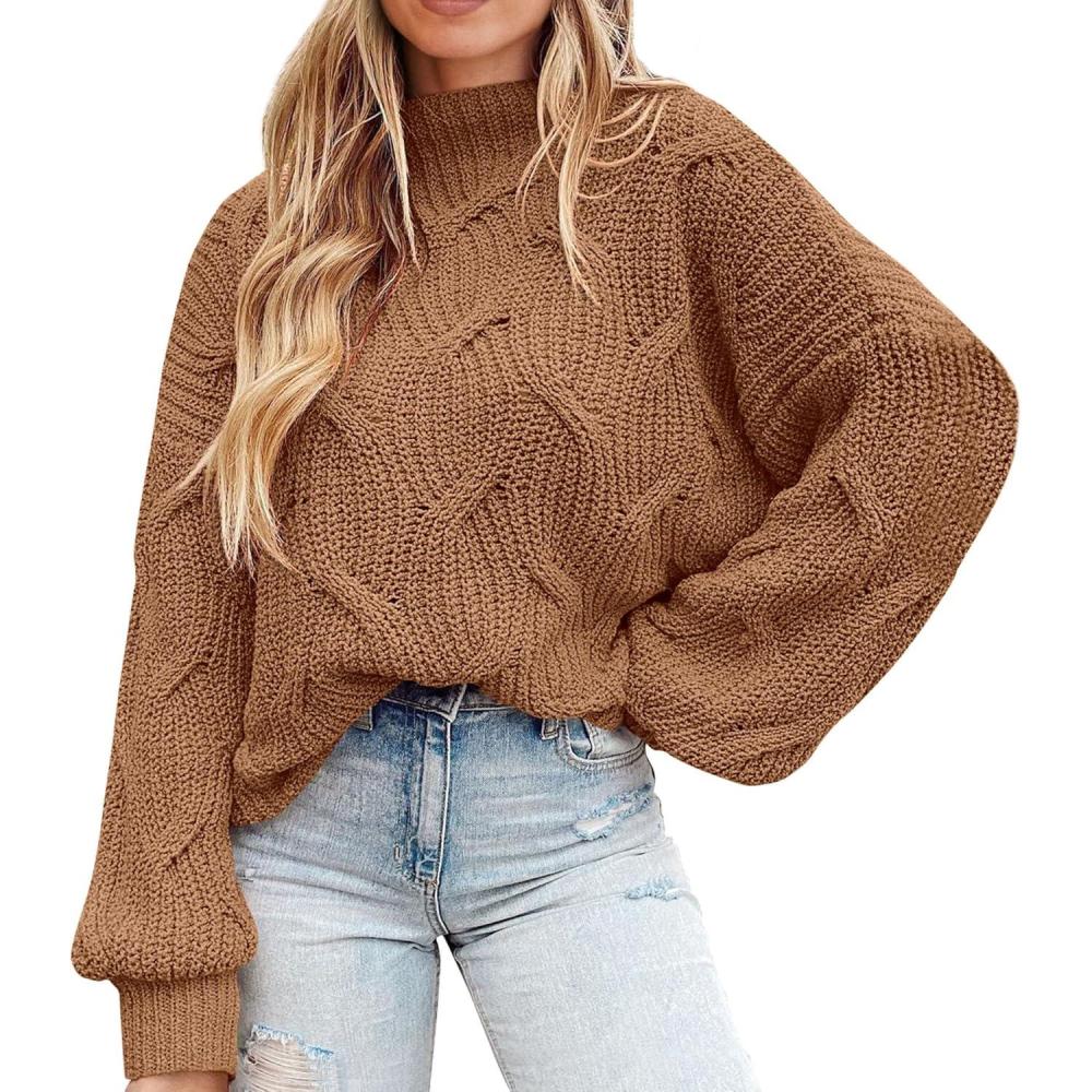 PRETTYGARDEN Women's Fall Oversized Pullover Sweaters Casual Crewneck Long Sleeve Chunky Cable Knit Tops Winter Clothing(Khaki)