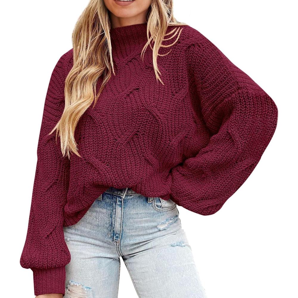 PRETTYGARDEN Women's Fall Oversized Pullover Sweaters Casual Crewneck Long Sleeve Chunky Cable Knit Tops Winter Clothing(Wine Red)