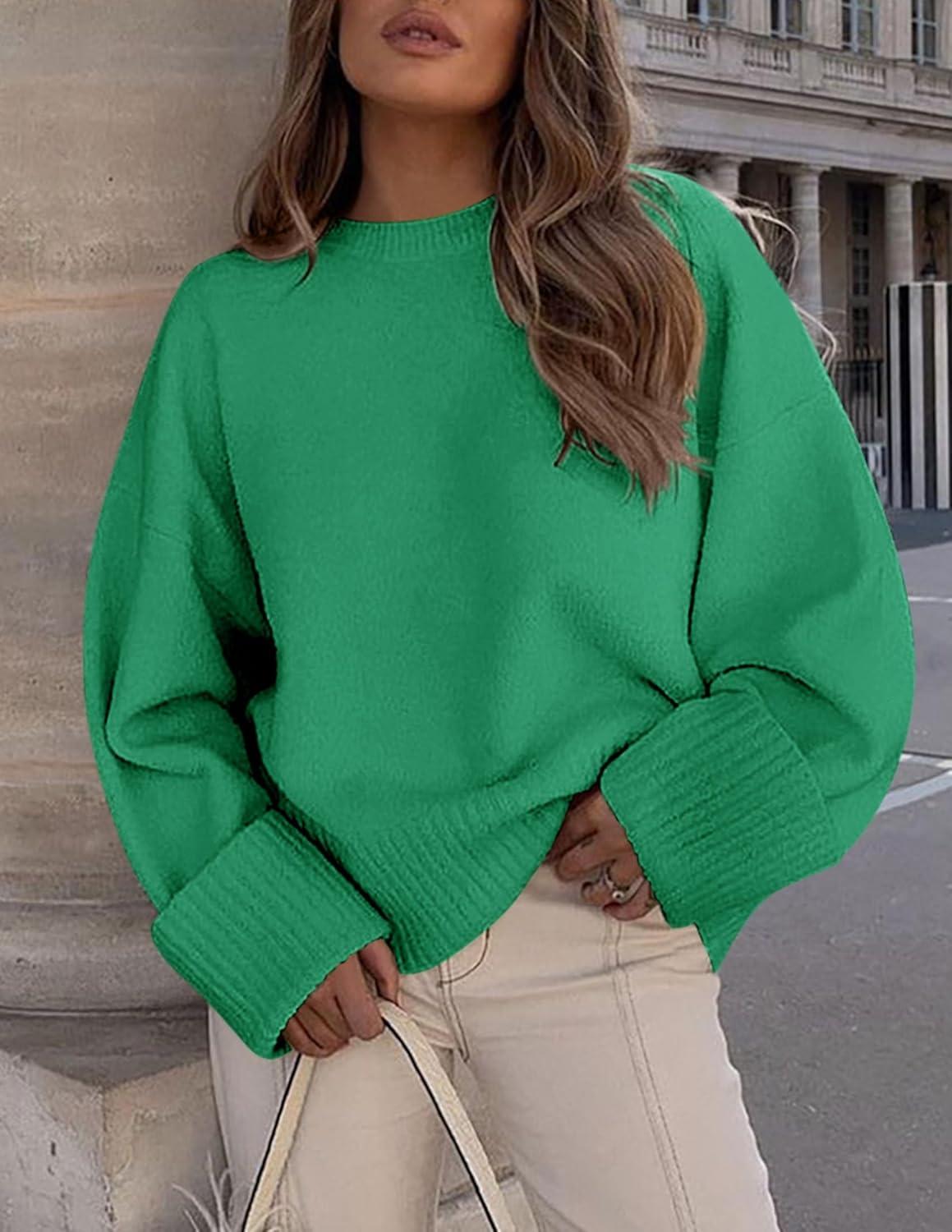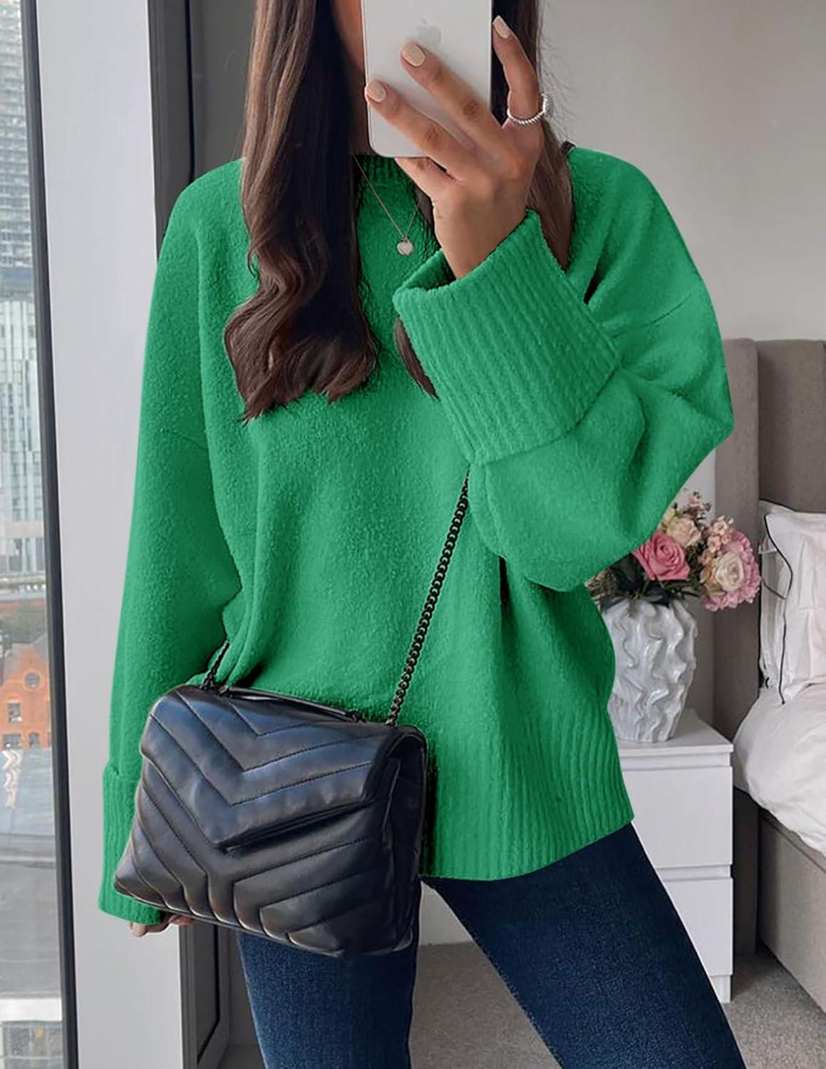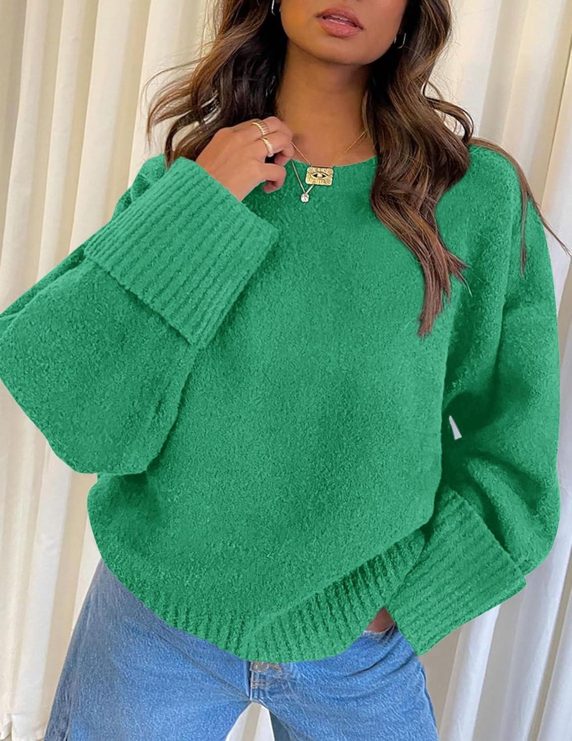 PRETTYGARDEN Women's Fall Oversized Sweaters Casual Crewneck Pullover Long Sleeve Fuzzy Chunky Knit Tops Blouse(Green)