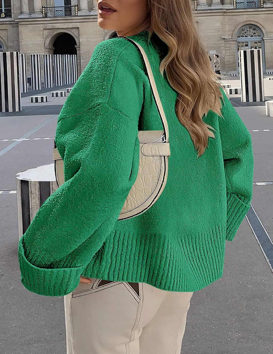 PRETTYGARDEN Women’s Fall Oversized Sweaters Casual Crewneck Pullover Long Sleeve Fuzzy Chunky Knit Tops Blouse(Green)