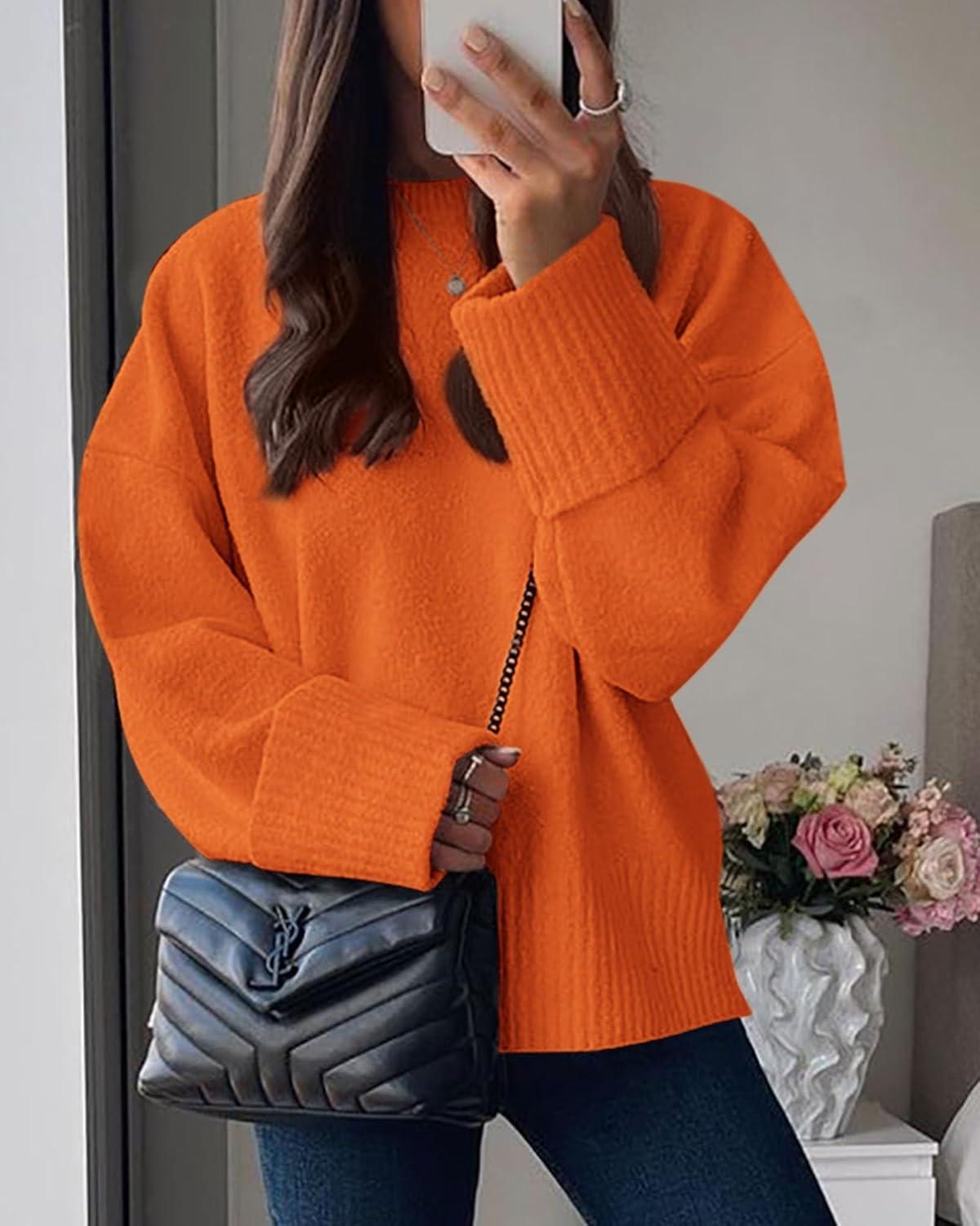 PRETTYGARDEN Women’s Fall Oversized Sweaters Casual Crewneck Pullover Long Sleeve Fuzzy Chunky Knit Tops Blouse(Orange)