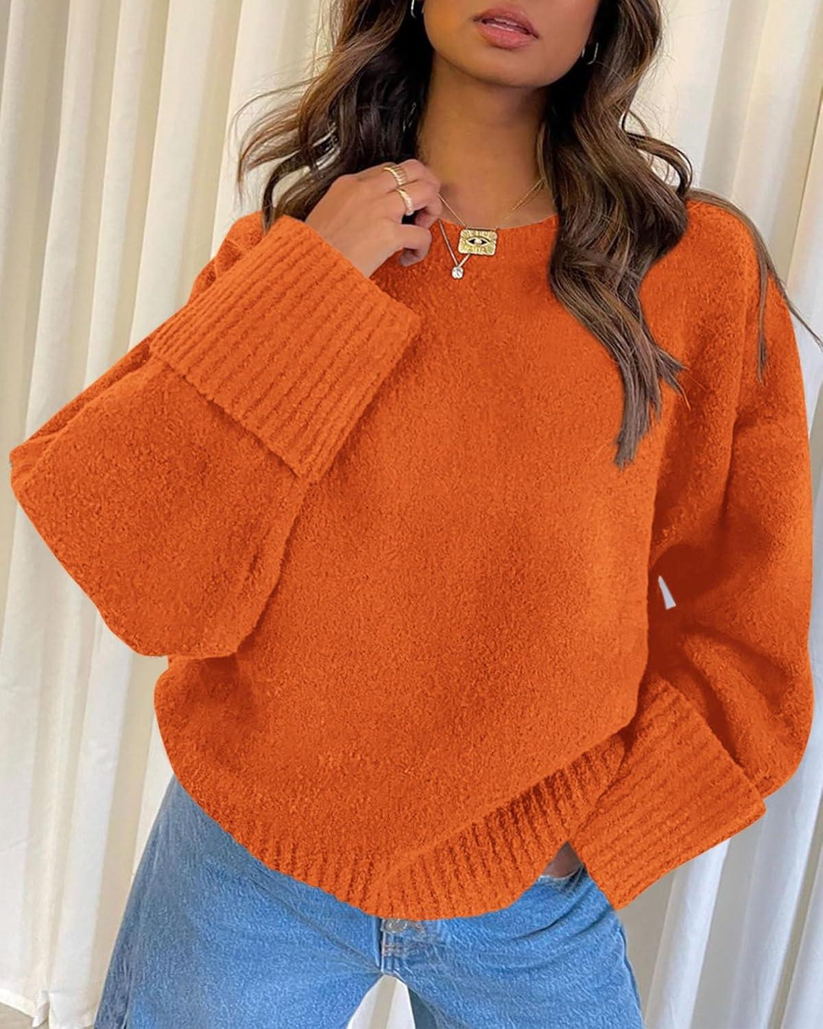 PRETTYGARDEN Women's Fall Oversized Sweaters Casual Crewneck Pullover Long Sleeve Fuzzy Chunky Knit Tops Blouse(Orange)