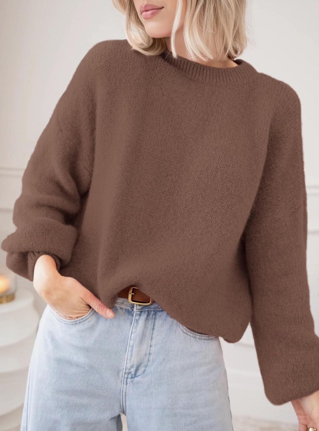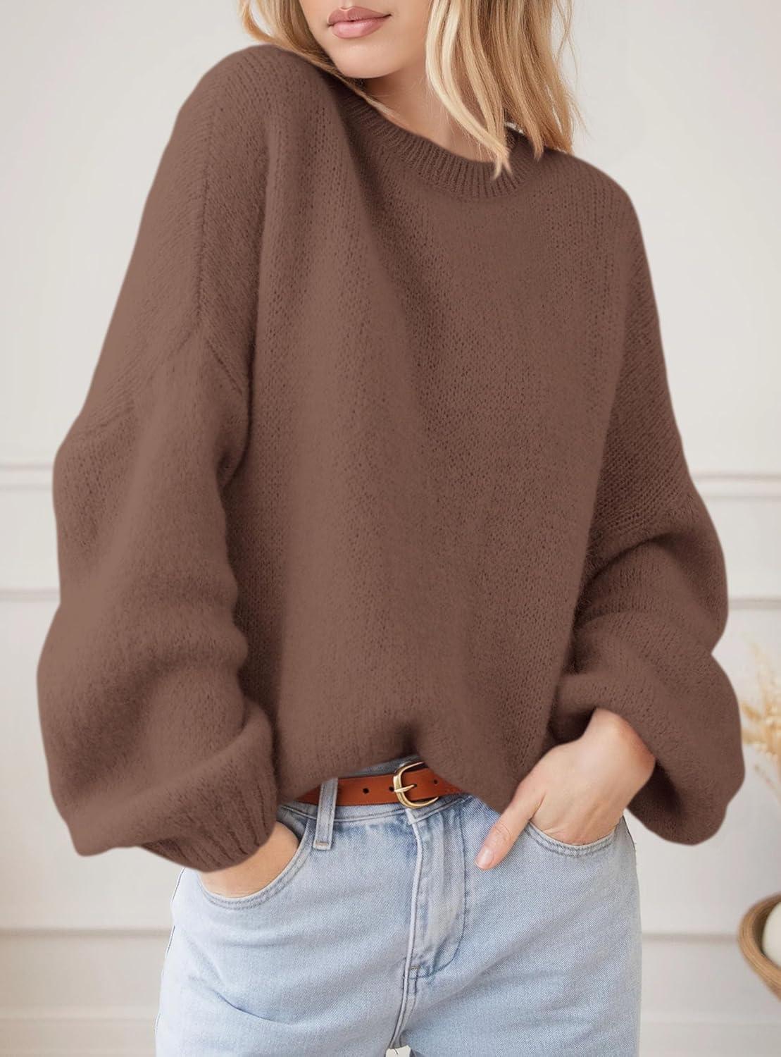 PRETTYGARDEN Women's Fall Oversized Sweaters Dressy Casual Long Sleeve Chunky Knit Winter Pullover Tops 2025 Holiday Outfits(Brown)