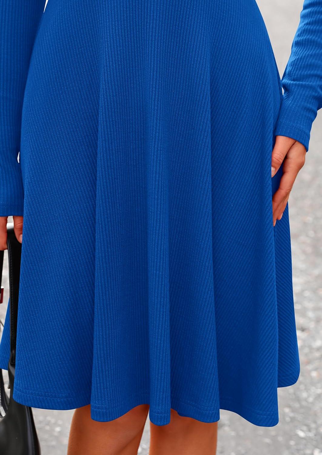 PRETTYGARDEN Women’s Fall Short Dress Ribbed Knit Crewneck Long Sleeve A Line Flowy Casual Elegant Going Out Winter Dresses(Blue)