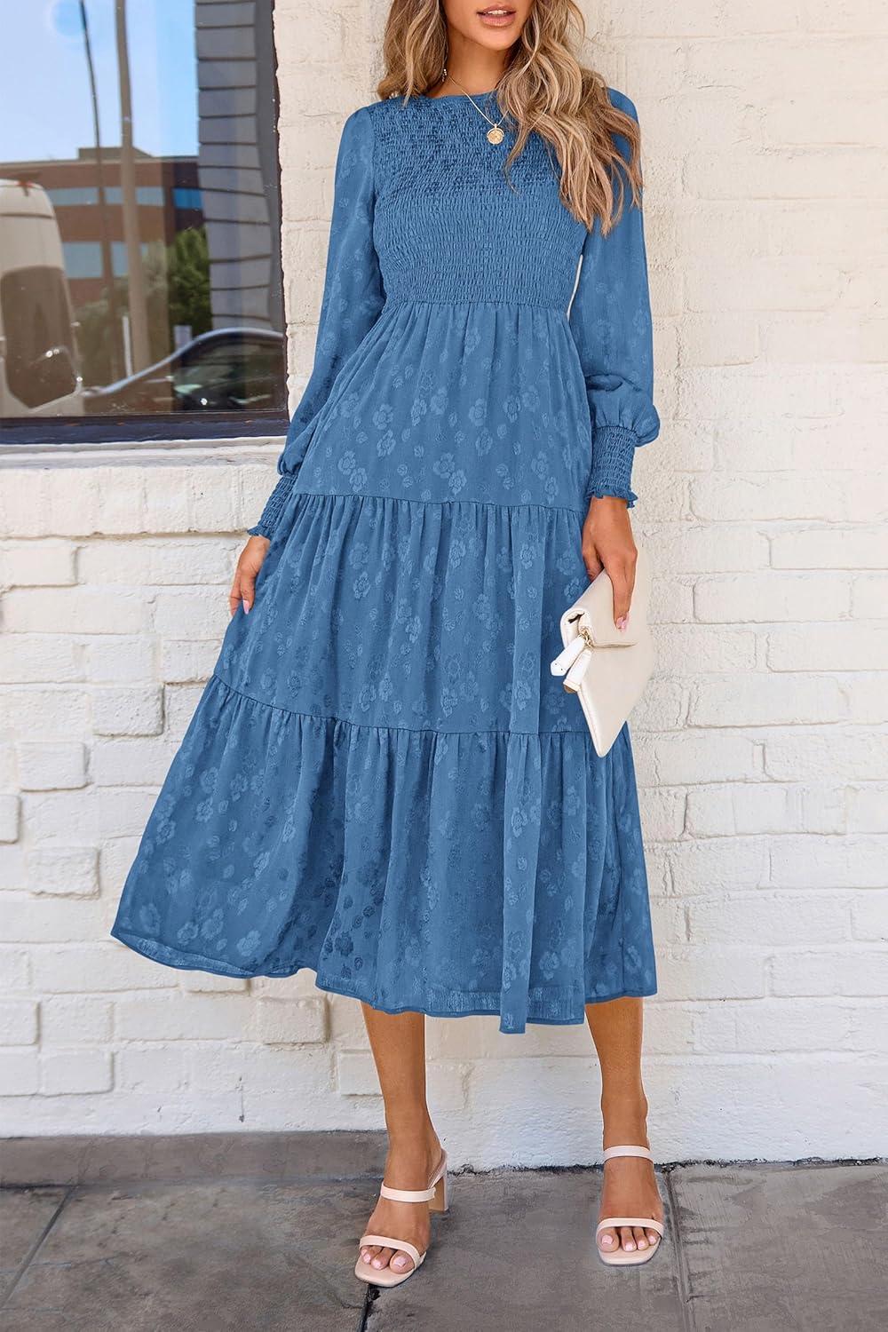 Be the first to review “PRETTYGARDEN Women’s Fall Spring Midi Dress Long Sleeve Floral Smocked Elegant Wedding Guest Long Flowy Dresses with Pockets(Blue)”