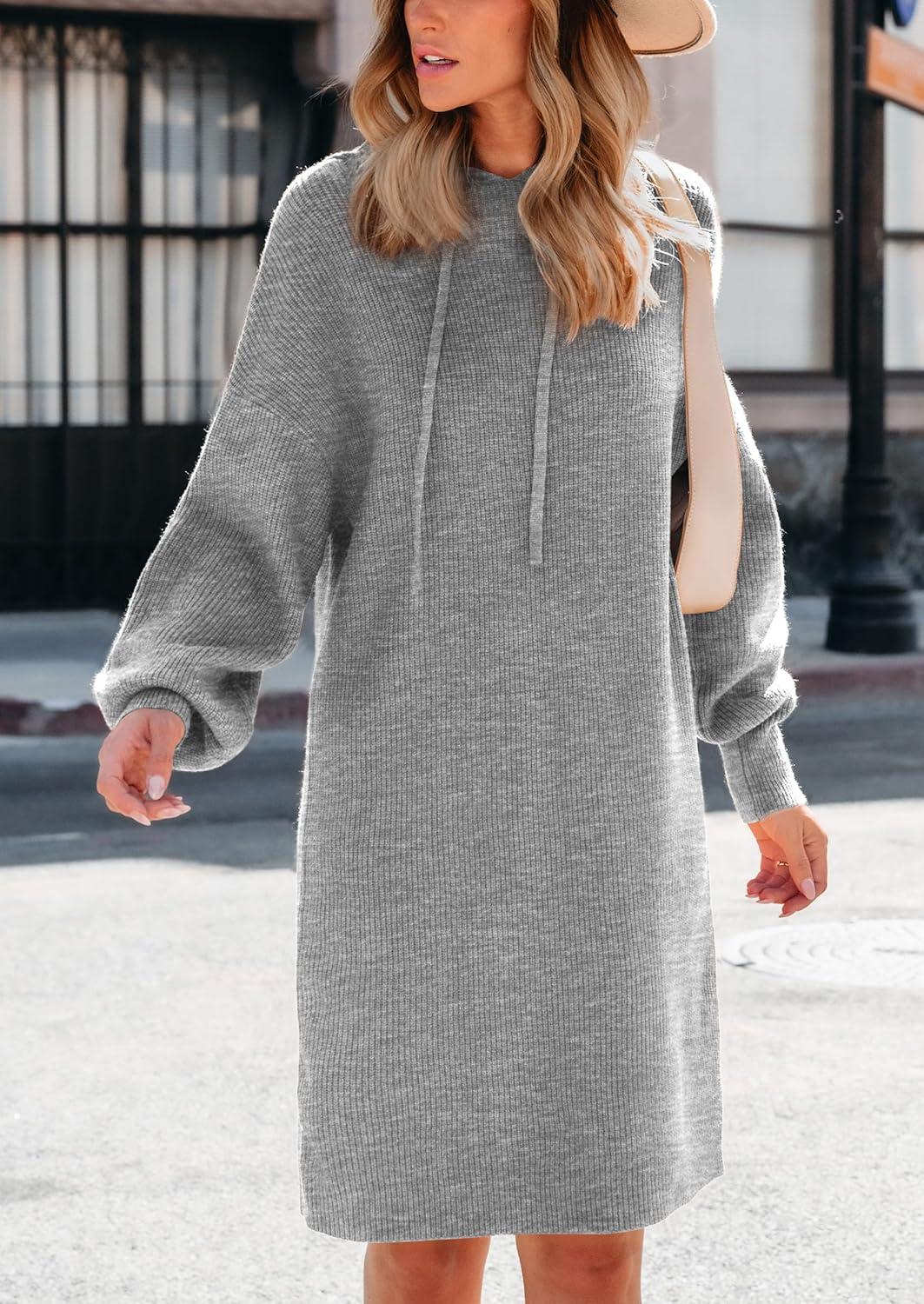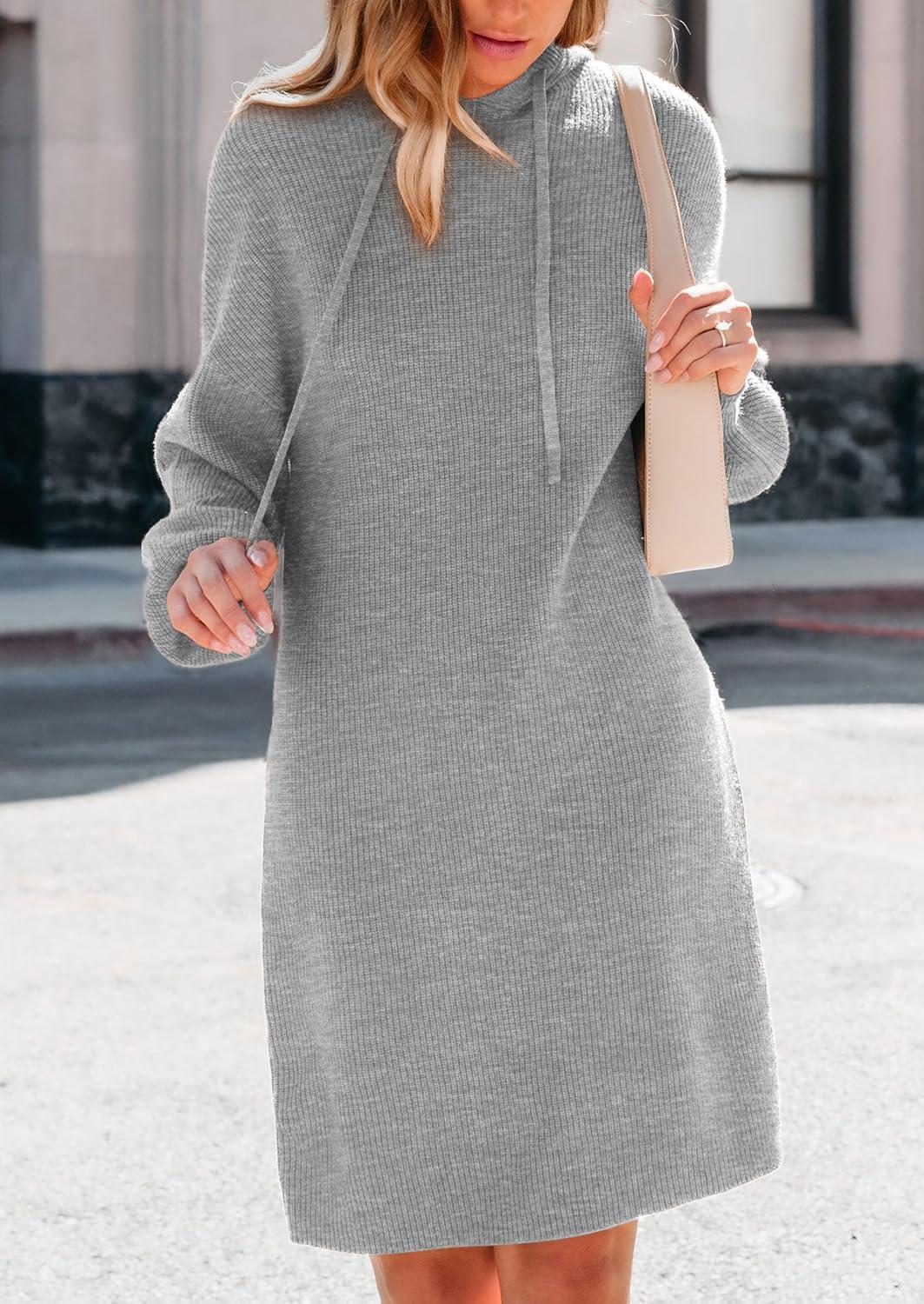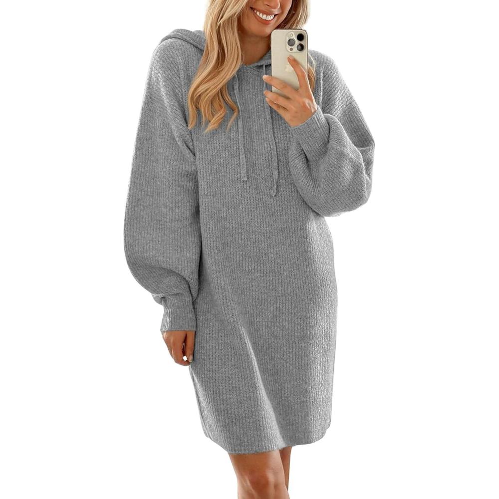 PRETTYGARDEN Womens Fall Sweater Dress Casual Long Sleeve Chunky Knit Pullover Oversized Hoodie Tunic Sweaters Winter Clothes(Grey)
