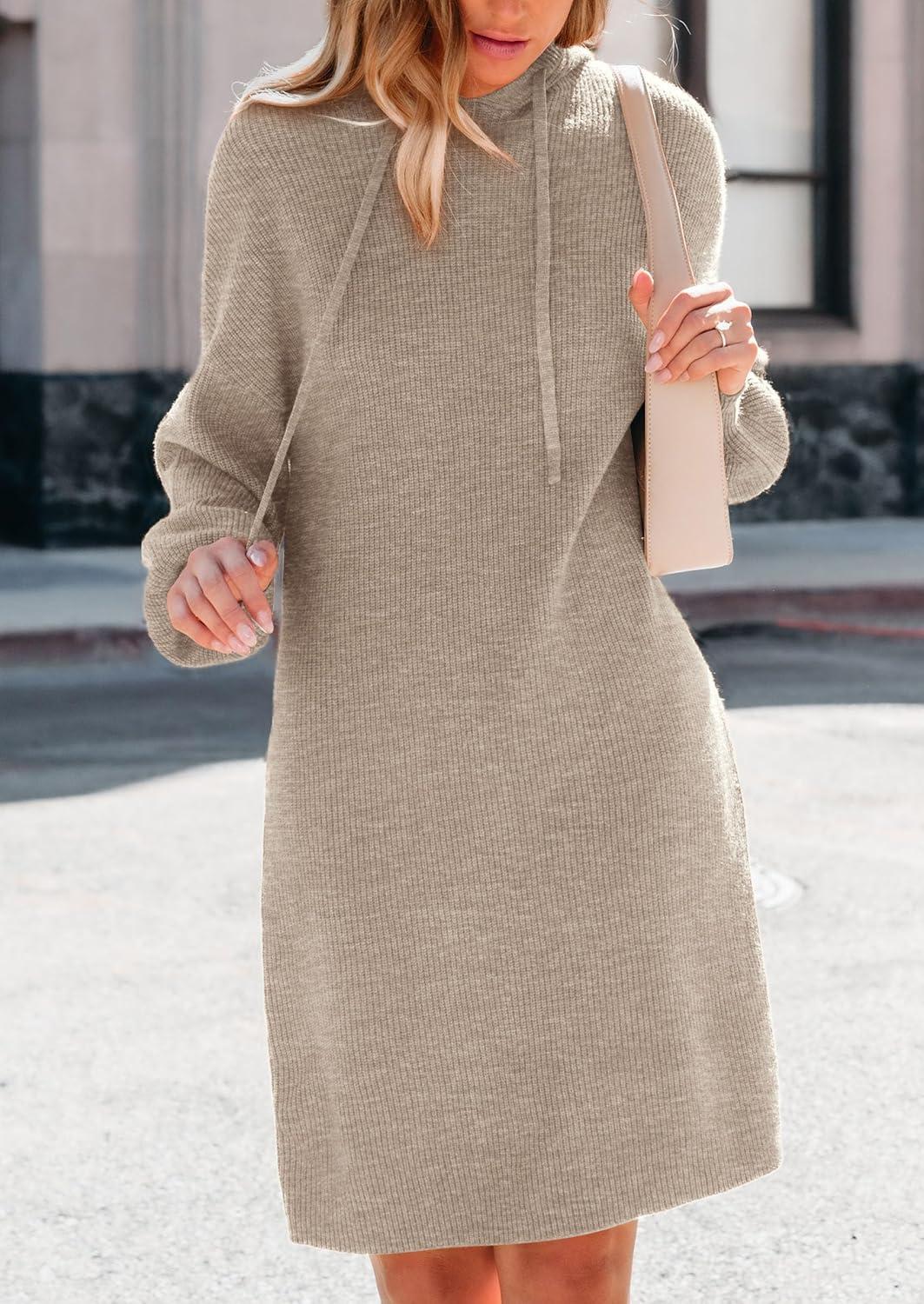 PRETTYGARDEN Womens Fall Sweater Dress Casual Long Sleeve Chunky Knit Pullover Oversized Hoodie Tunic Sweaters Winter Clothes(Khaki)