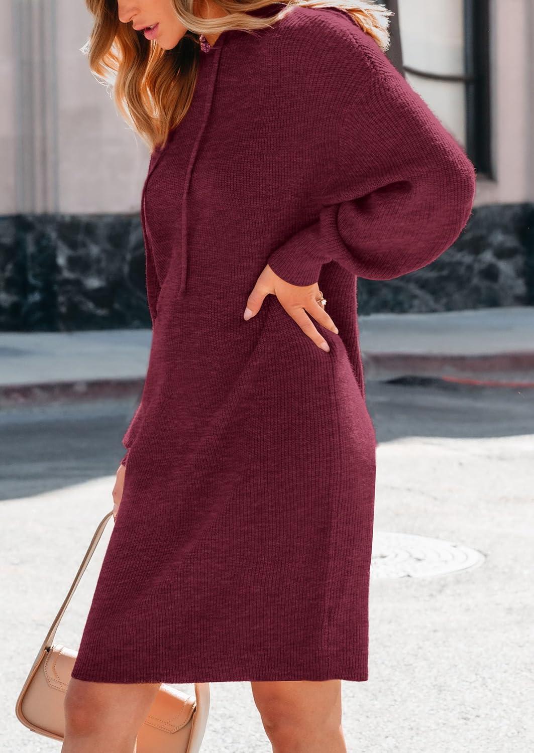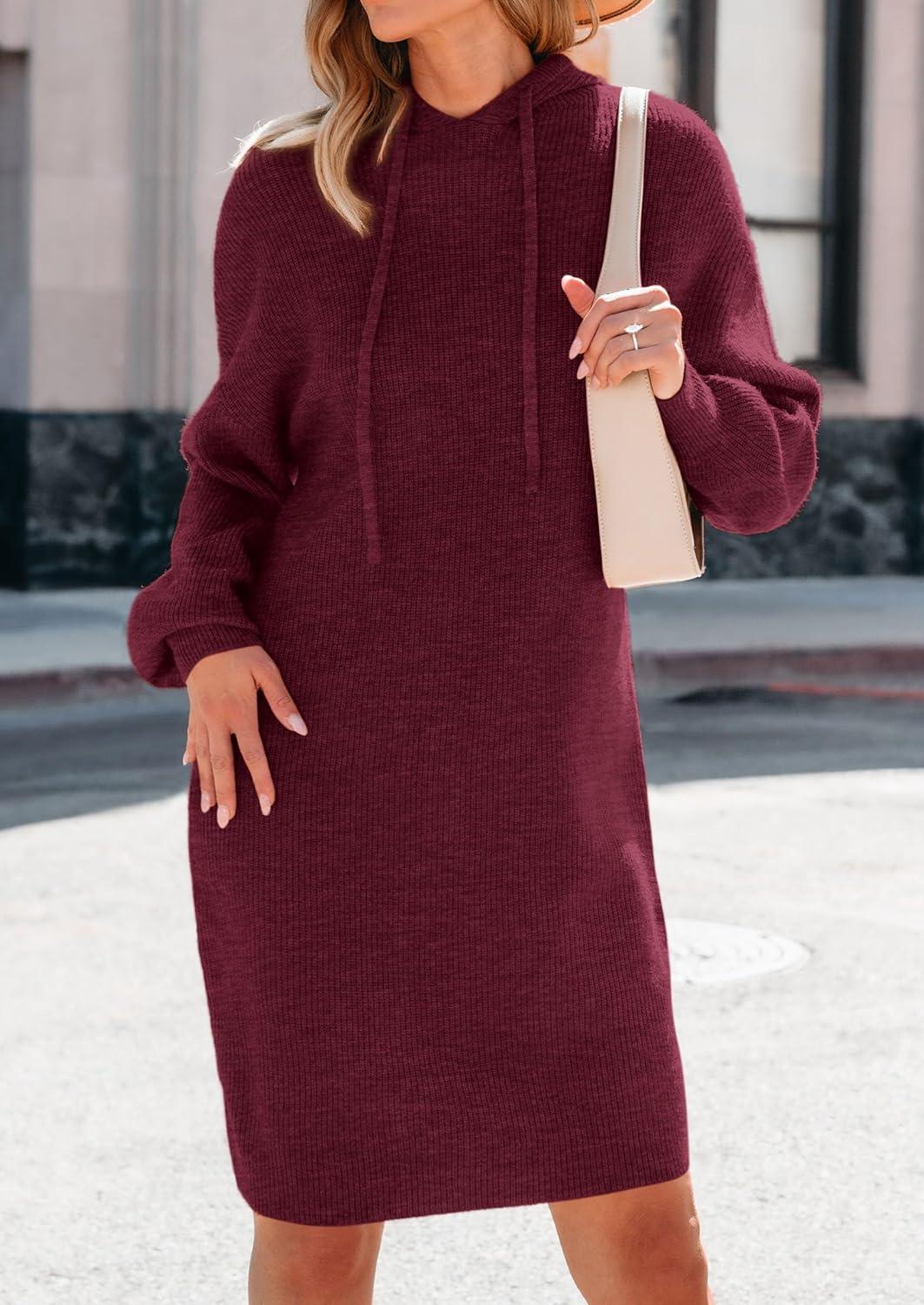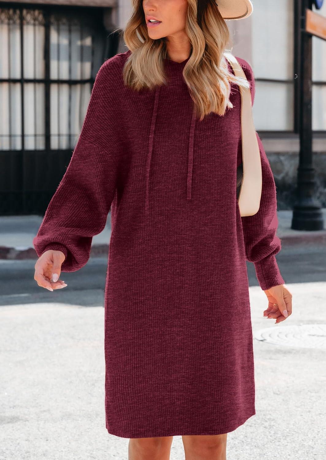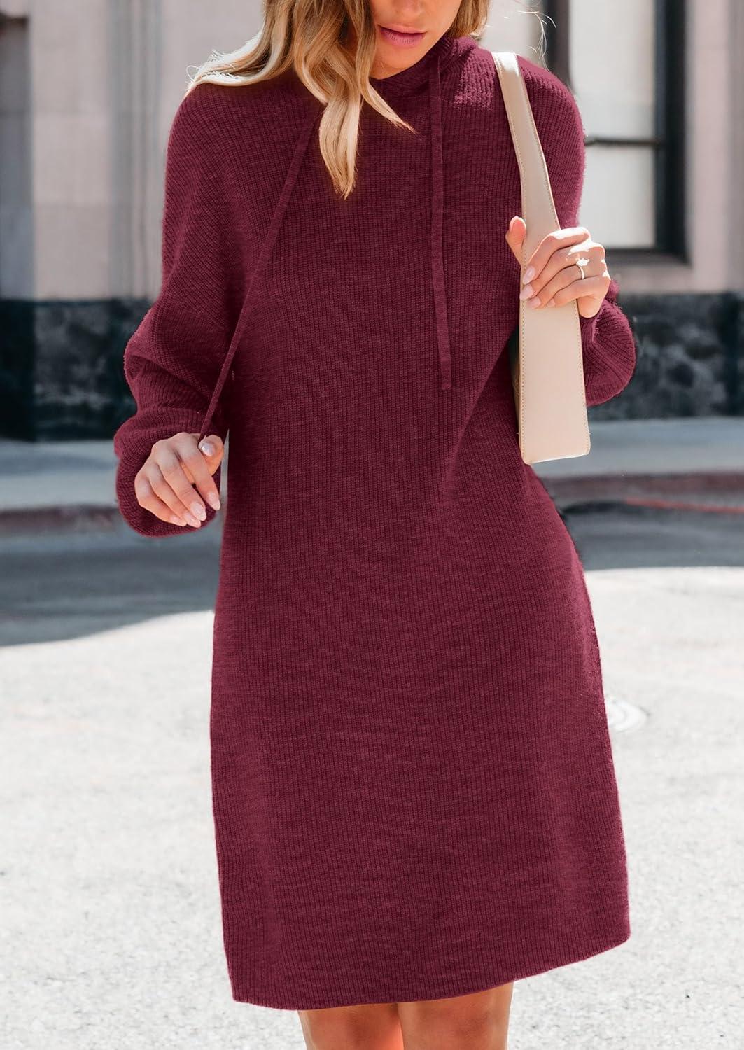 PRETTYGARDEN Womens Fall Sweater Dress Casual Long Sleeve Chunky Knit Pullover Oversized Hoodie Tunic Sweaters Winter Clothes(Wine Red)