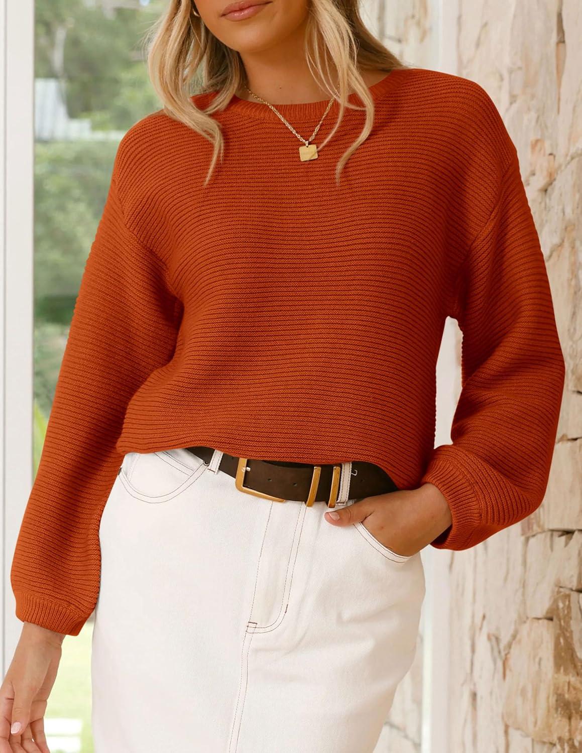 PRETTYGARDEN Womens Fall Sweaters 2025 Casual Loose Crewneck Ribbed Long Sleeve Top Knit Pullover Sweater(Rust Red)