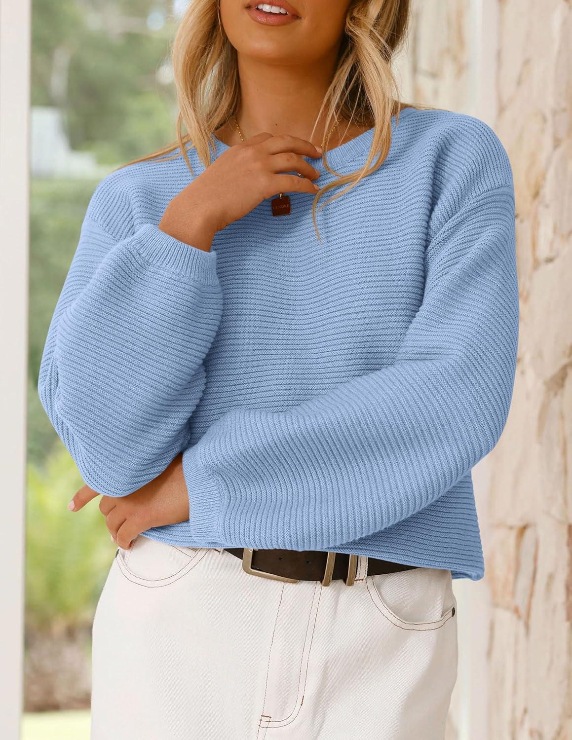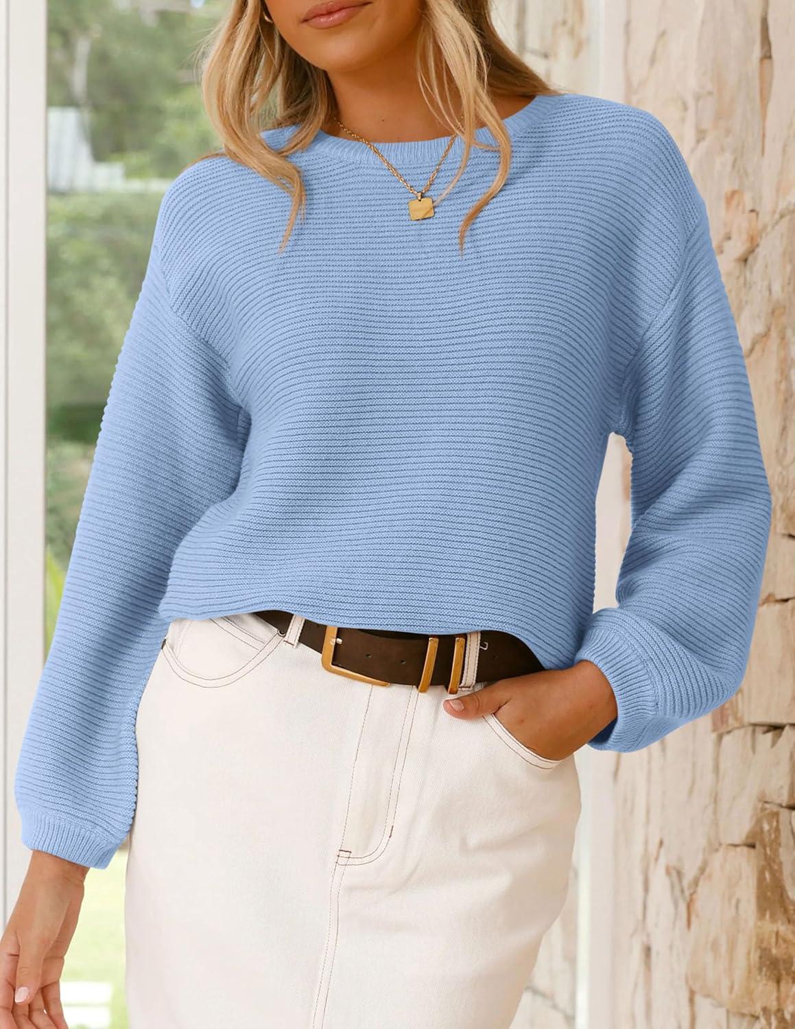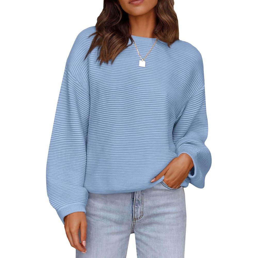 PRETTYGARDEN Womens Fall Sweaters 2025 Casual Loose Crewneck Ribbed Long Sleeve Top Knit Pullover Sweater(Sky Blue)
