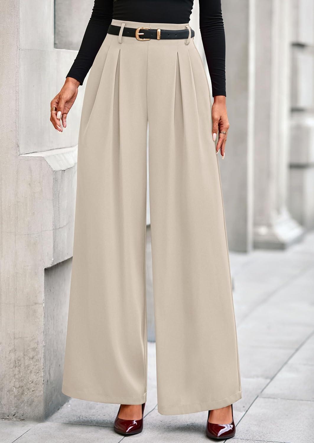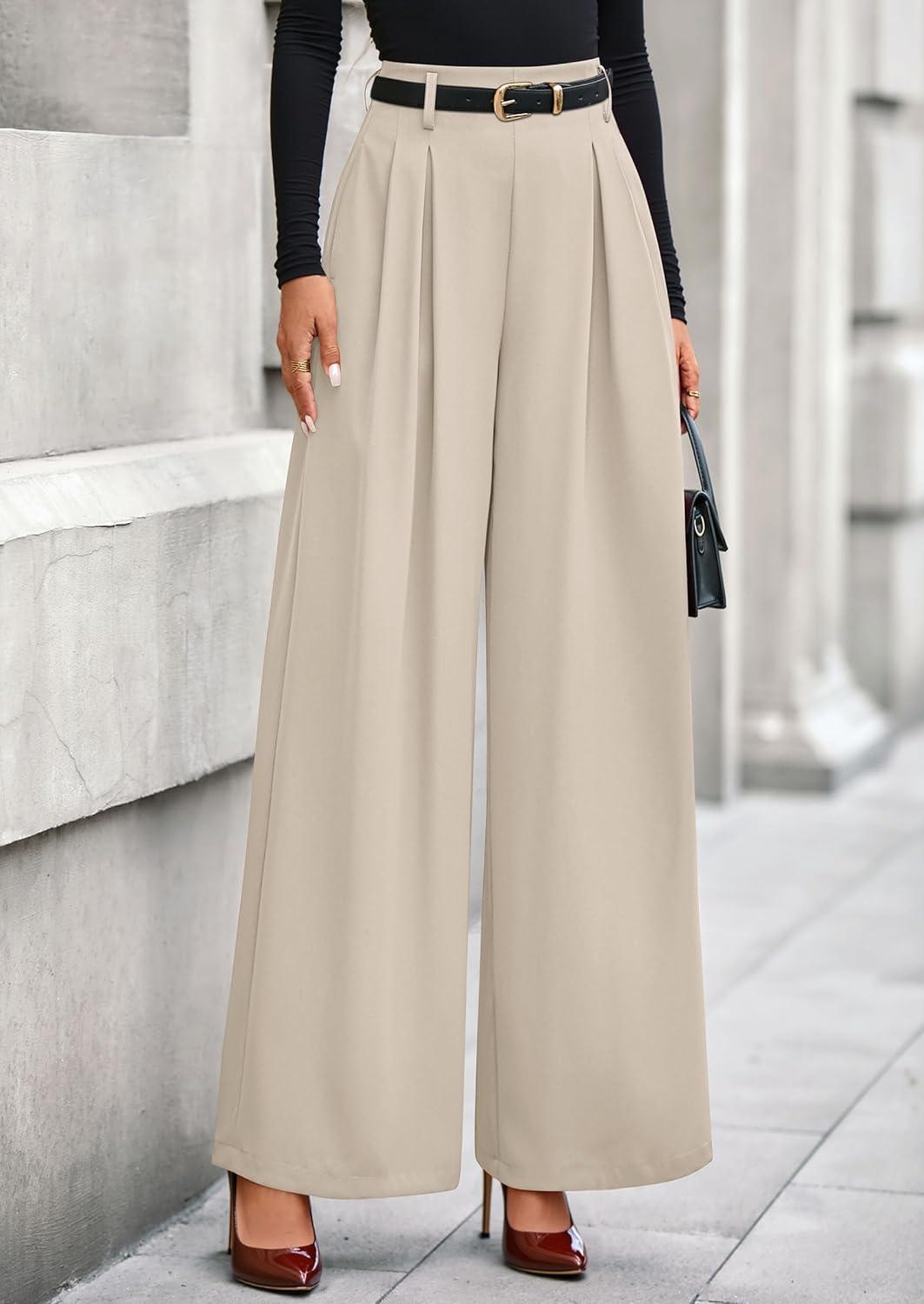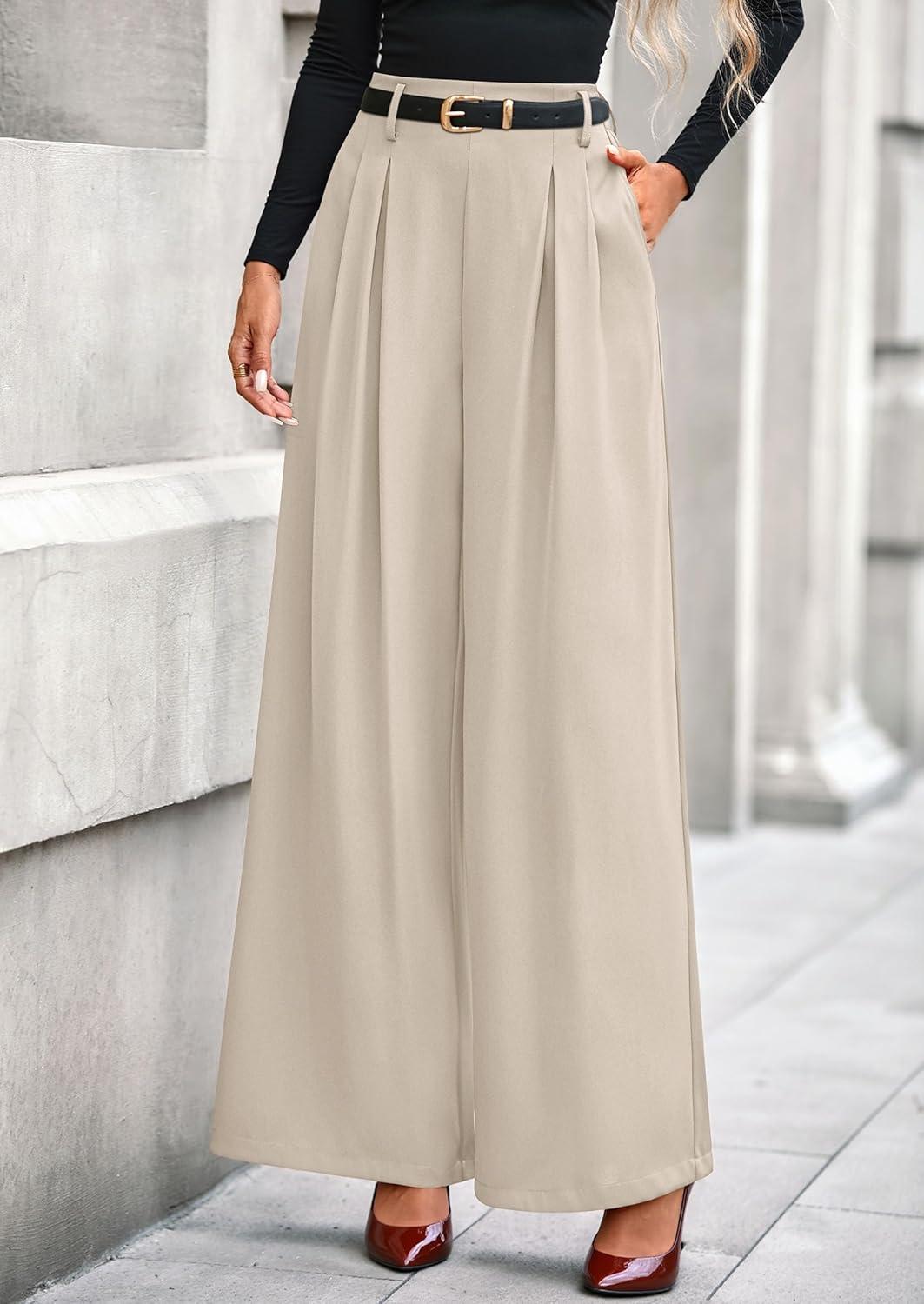 PRETTYGARDEN Womens Fall Wide Leg Trousers 2025 High Elastic Waist Loose Pleated Long Flowy Palazzo Work Pants with Pockets(Apricot)