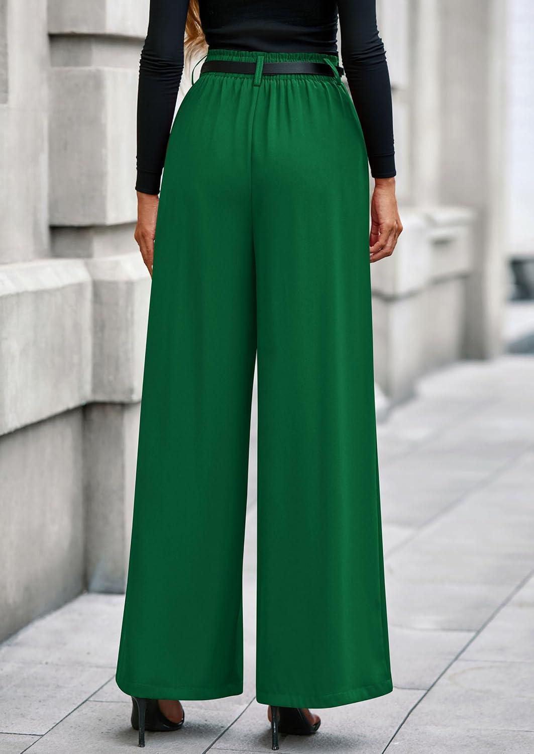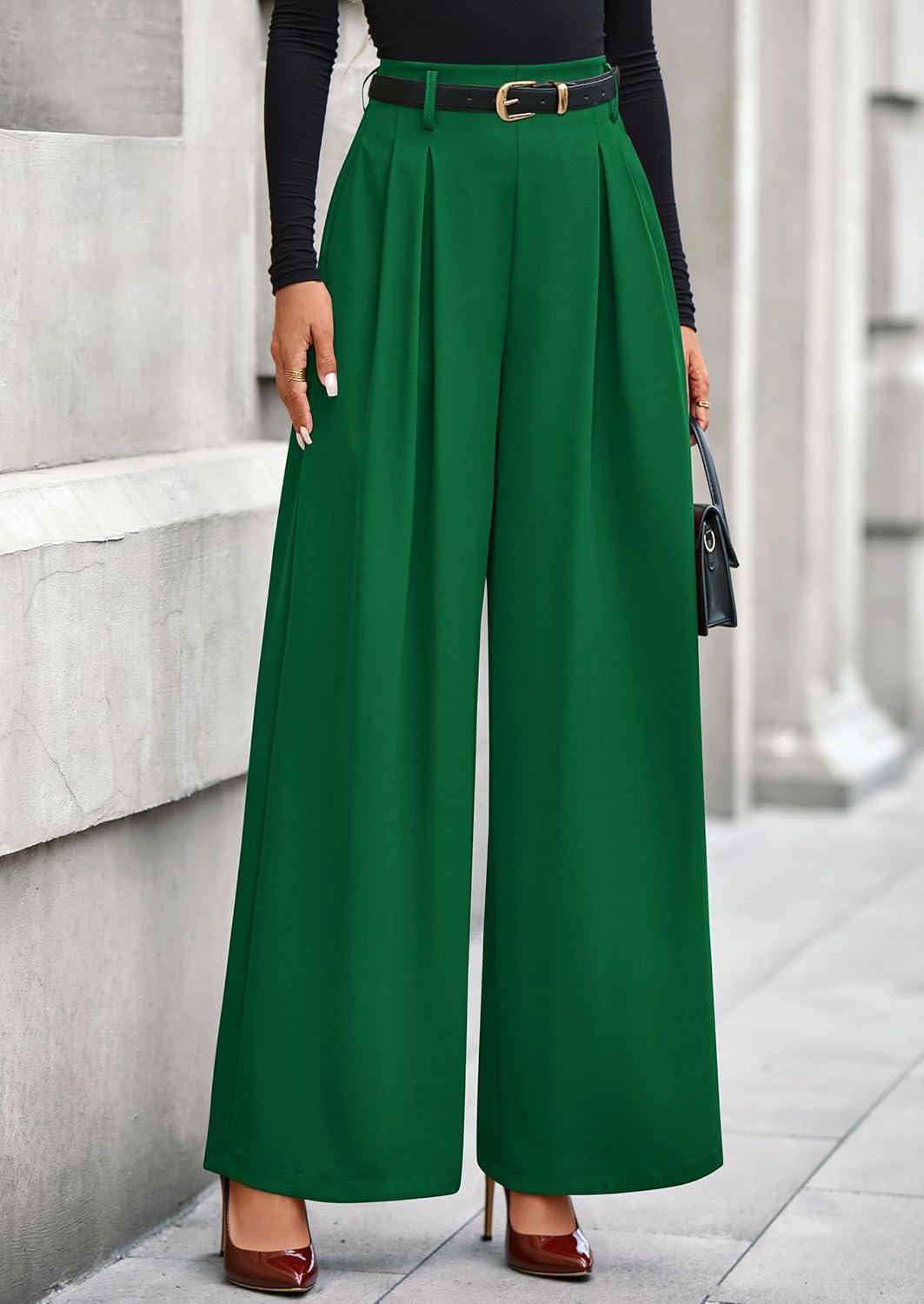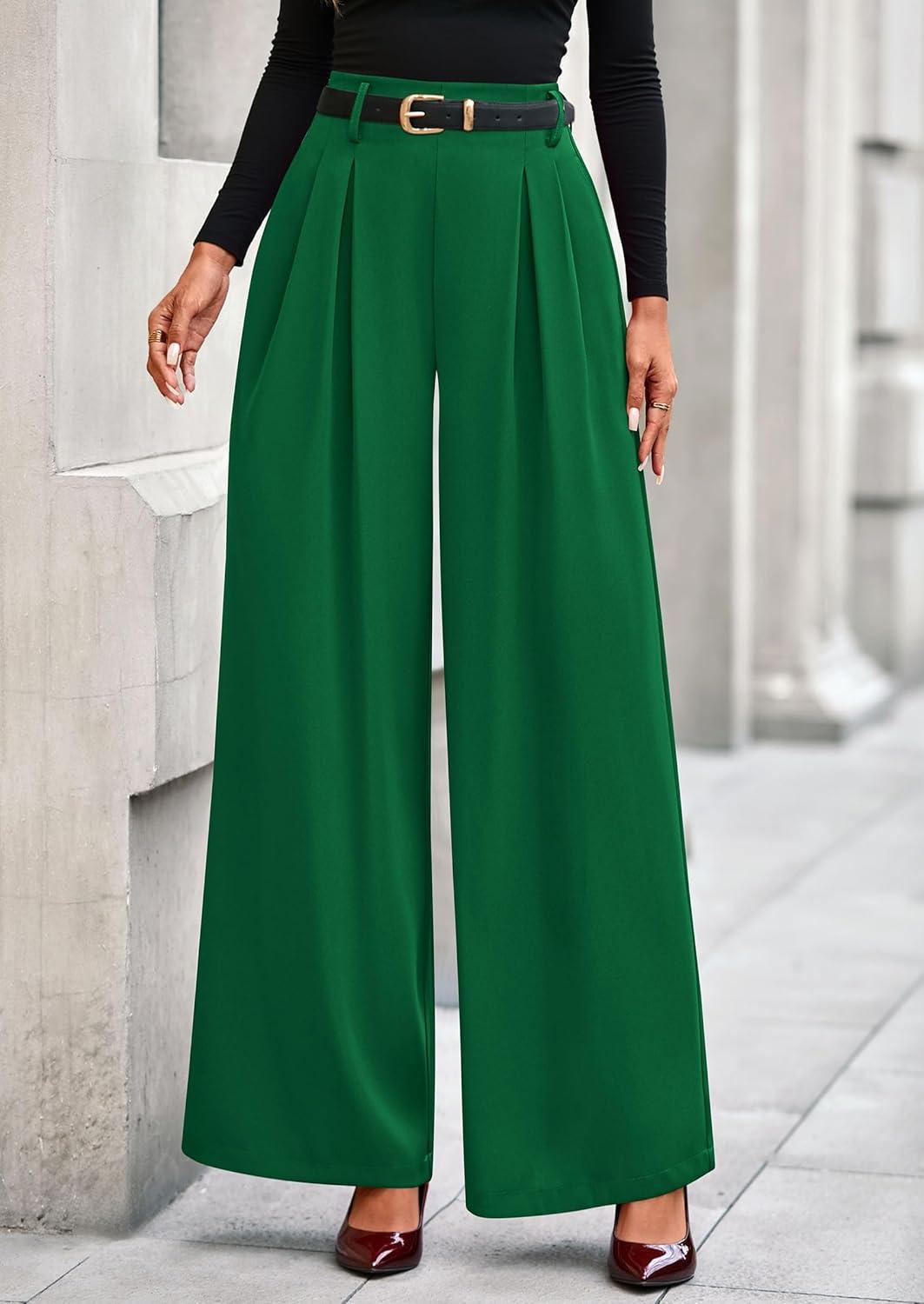 PRETTYGARDEN Womens Fall Wide Leg Trousers 2025 High Elastic Waist Loose Pleated Long Flowy Palazzo Work Pants with Pockets(Green)