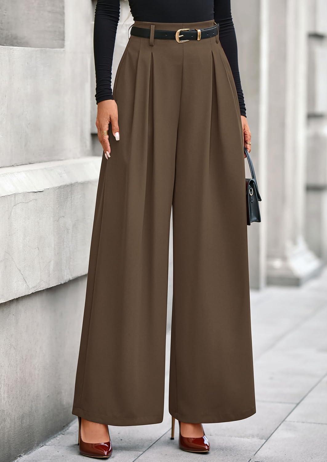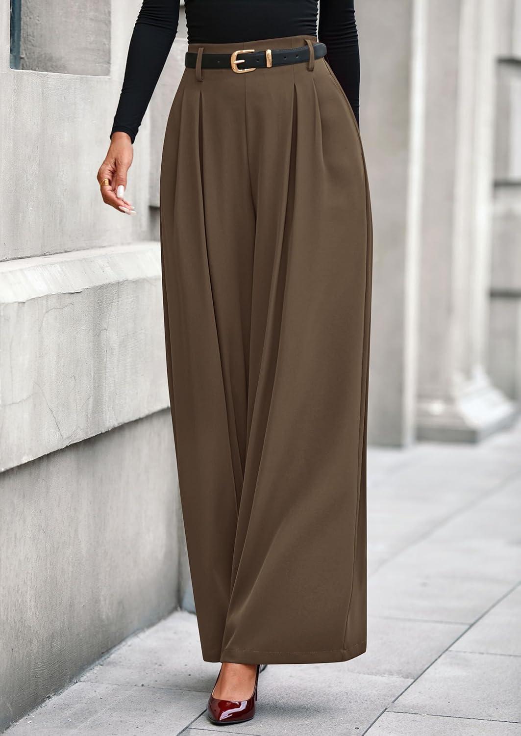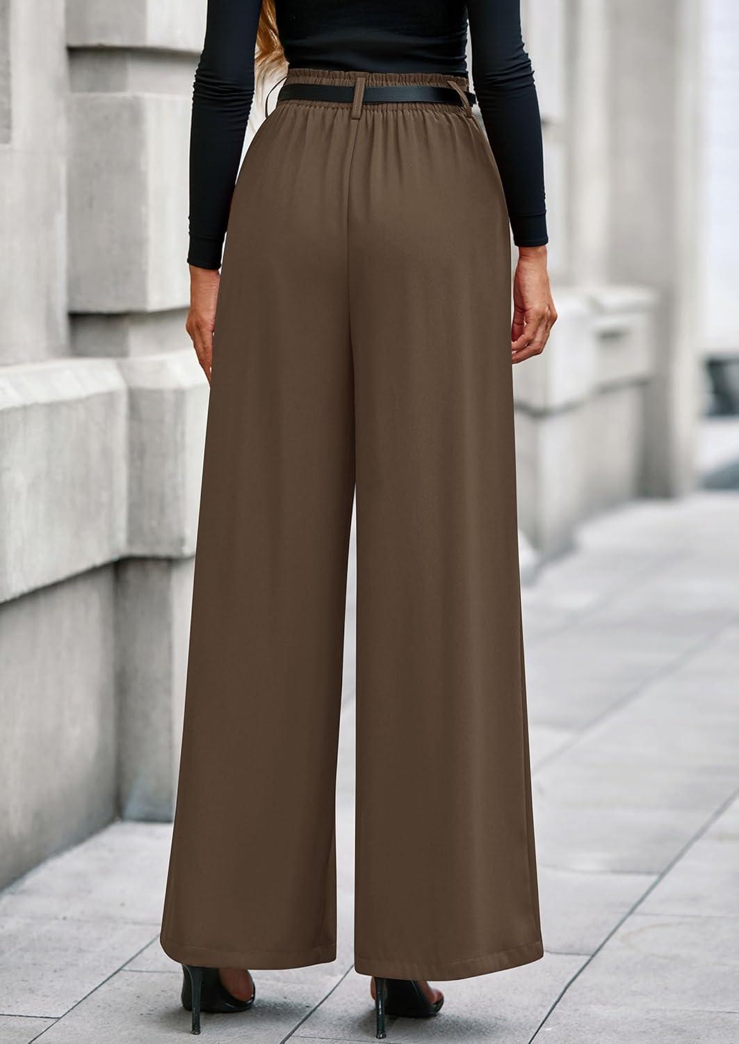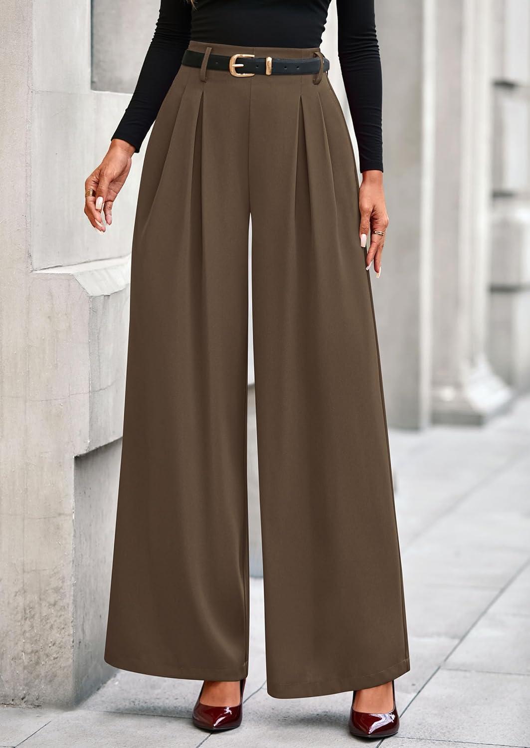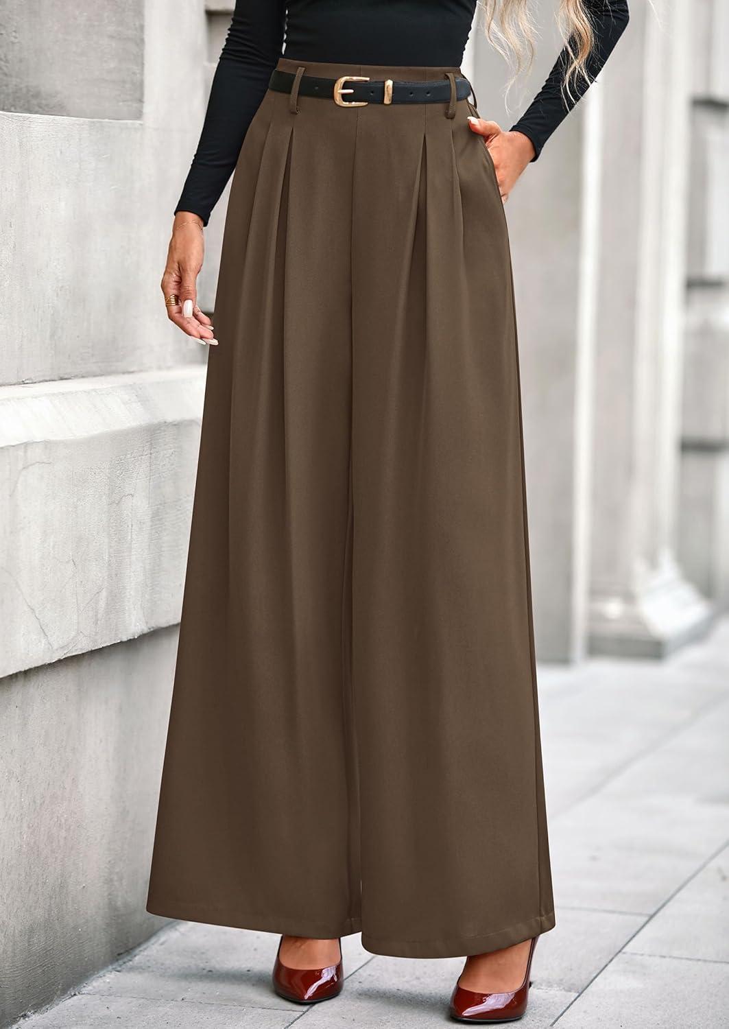 PRETTYGARDEN Womens Fall Wide Leg Trousers 2025 High Elastic Waist Loose Pleated Long Flowy Palazzo Work Pants with Pockets(Light Brown)