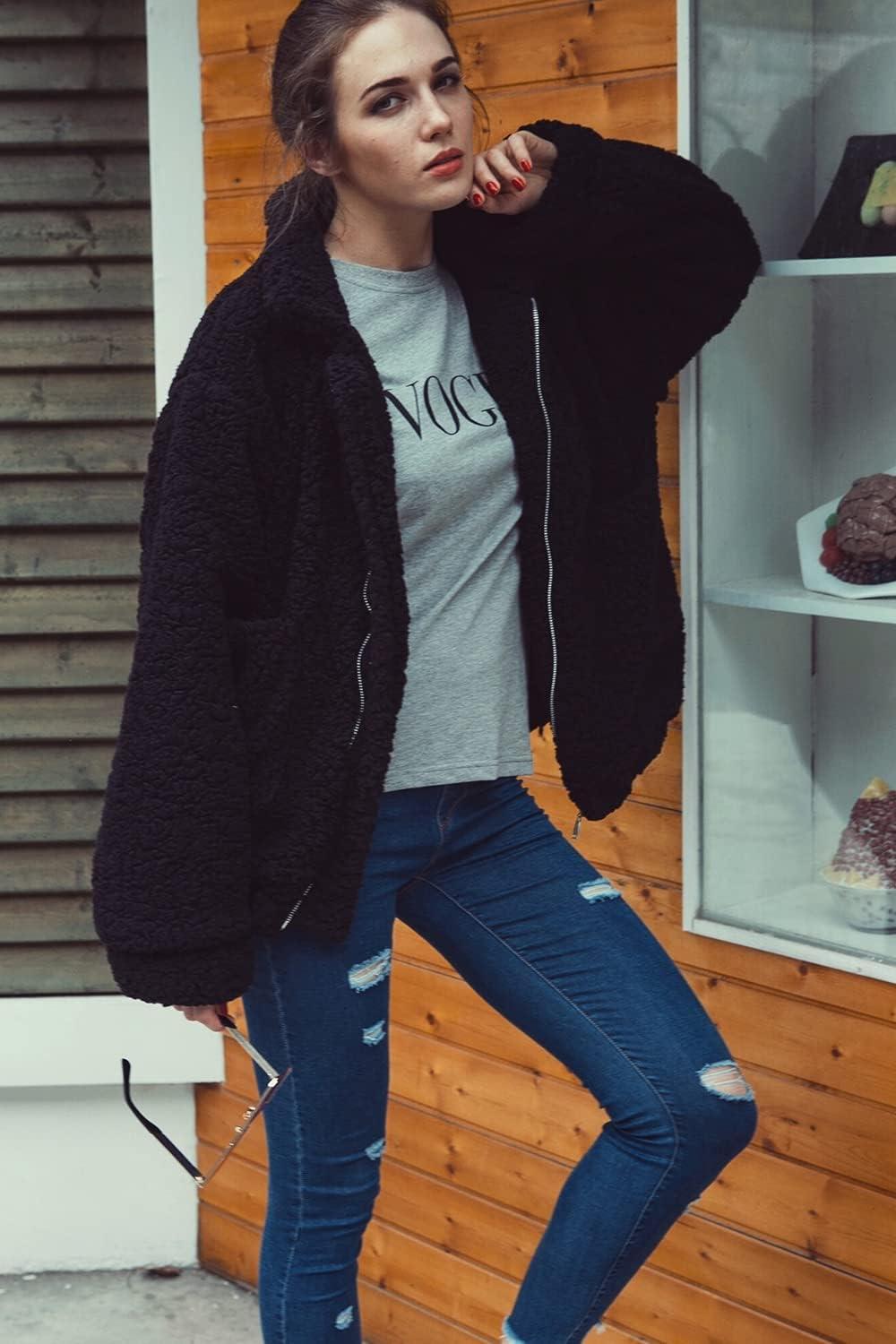 PRETTYGARDEN Women’s Fashion Winter Coats Sherpa Fleece Faux Fur Shearling Oversized Trendy Jackets Warm Outerwear Clothing(Black)