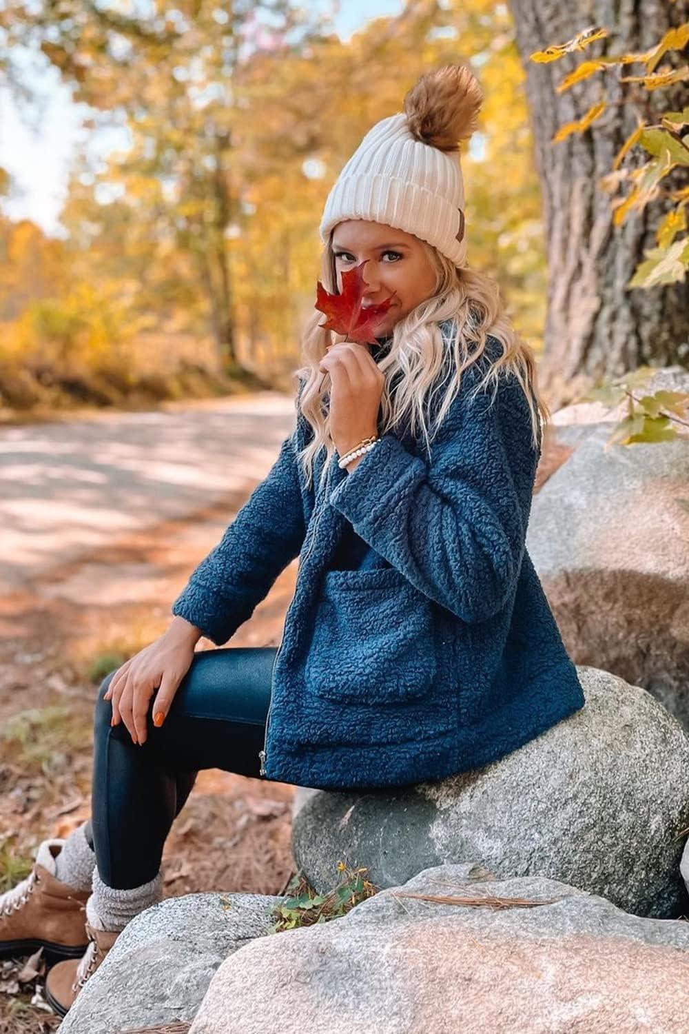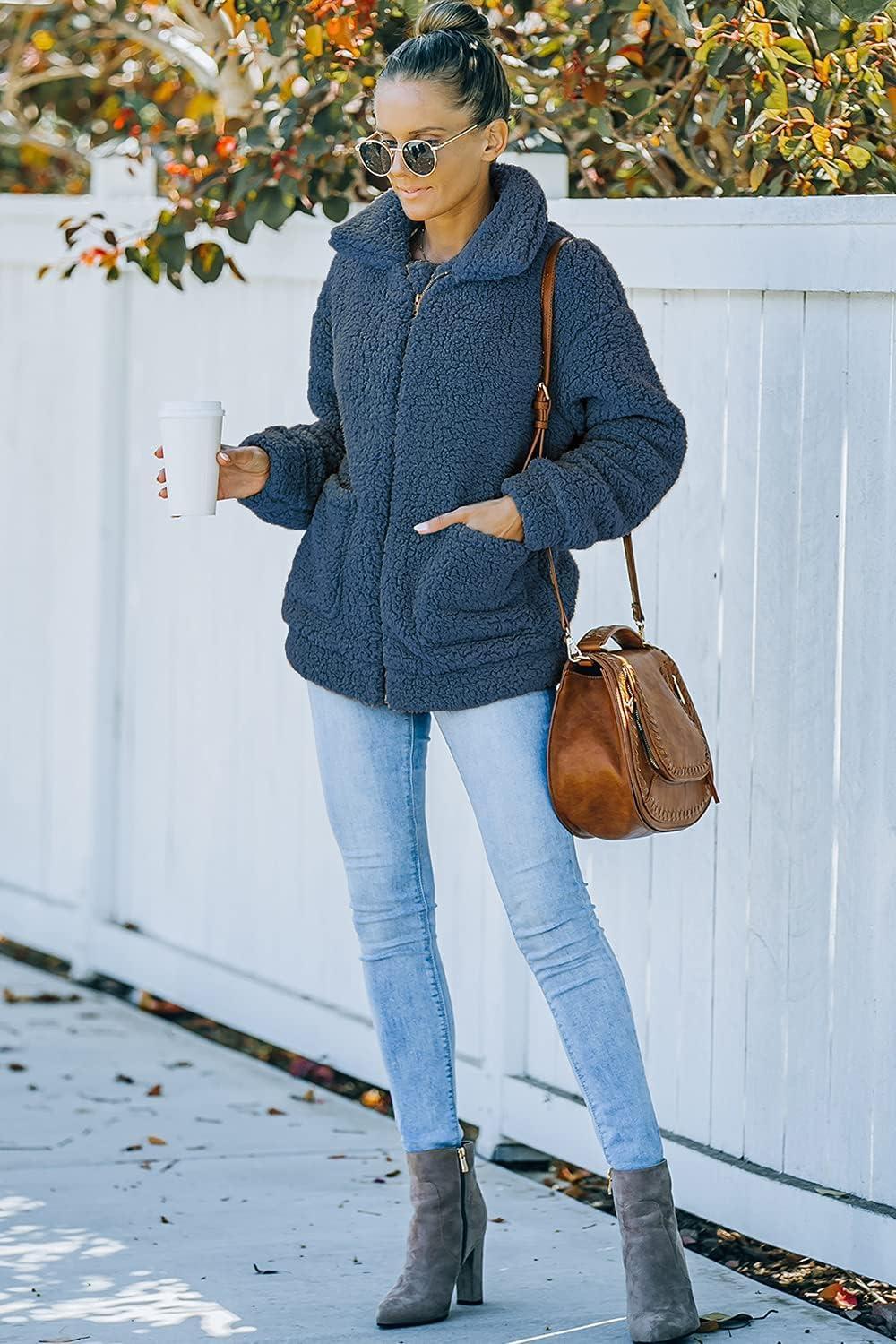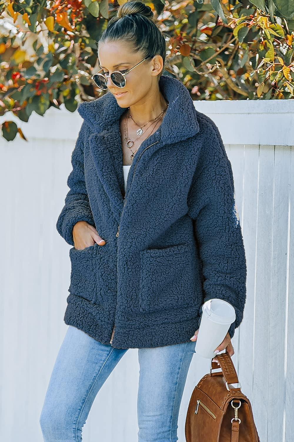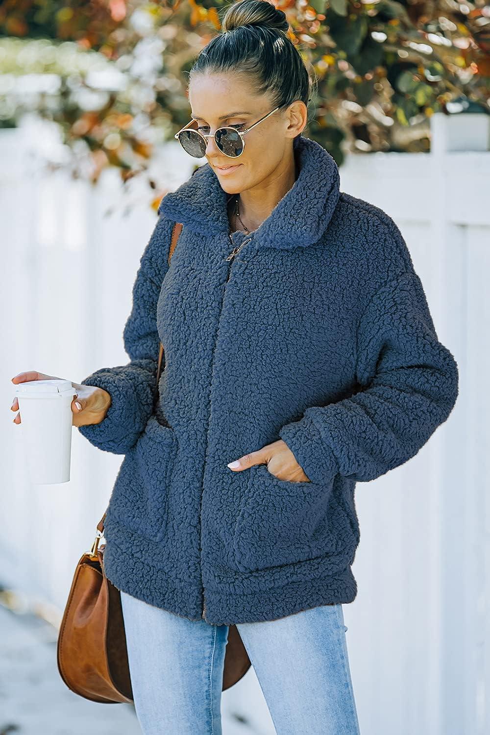 PRETTYGARDEN Women’s Fashion Winter Coats Sherpa Fleece Faux Fur Shearling Oversized Trendy Jackets Warm Outerwear Clothing(Blue)
