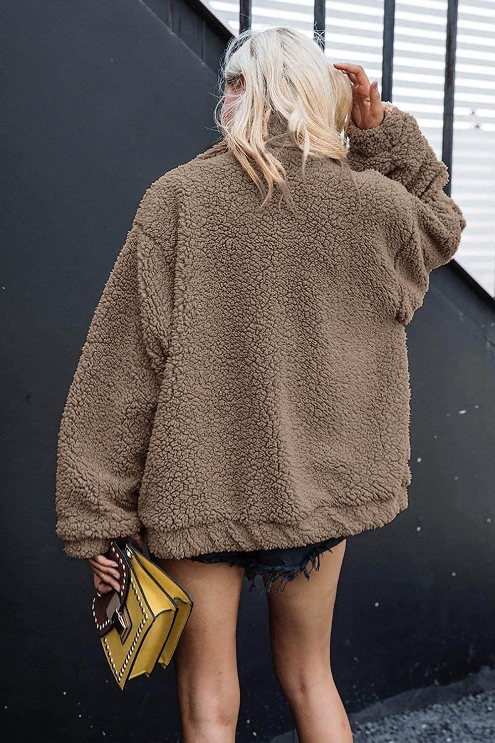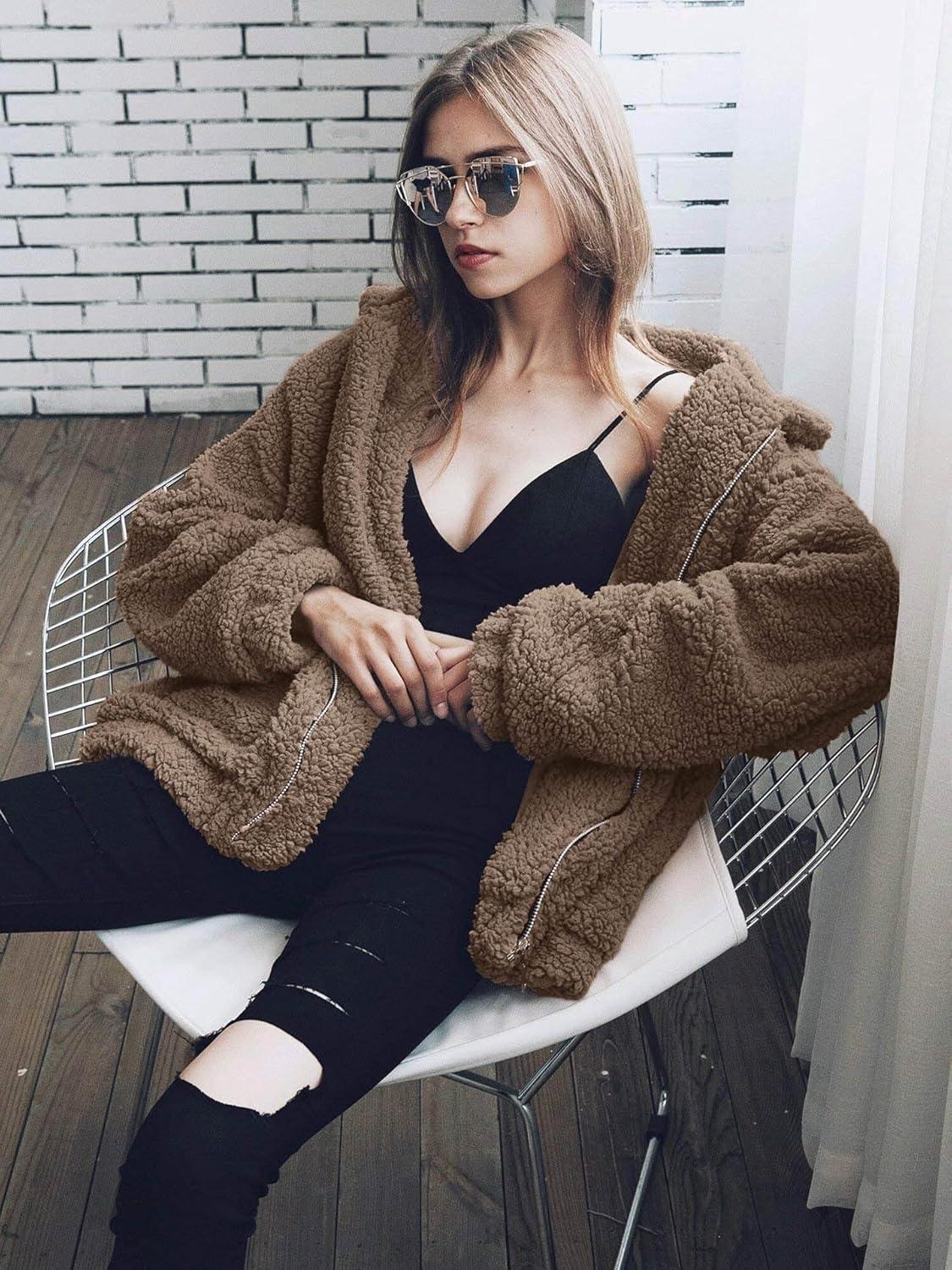 PRETTYGARDEN Women’s Fashion Winter Coats Sherpa Fleece Faux Fur Shearling Oversized Trendy Jackets Warm Outerwear Clothing(Coffee)