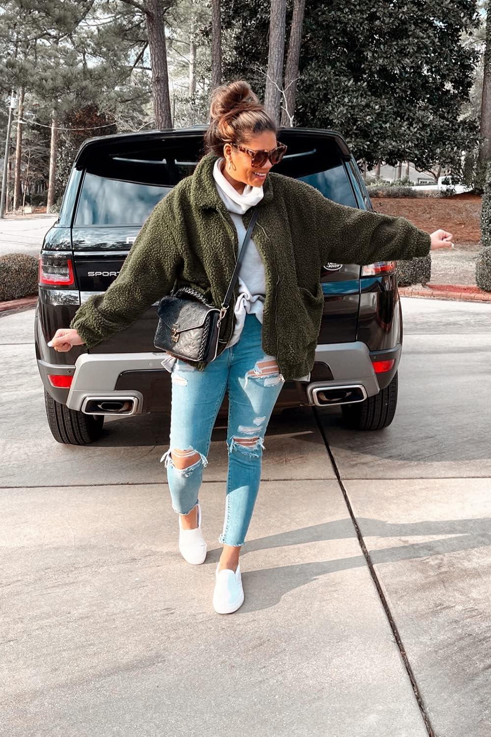PRETTYGARDEN Women’s Fashion Winter Coats Sherpa Fleece Faux Fur Shearling Oversized Trendy Jackets Warm Outerwear Clothing(Green)