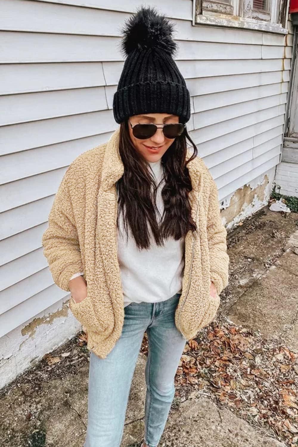 PRETTYGARDEN Women's Fashion Winter Coats Sherpa Fleece Faux Fur Shearling Oversized Trendy Jackets Warm Outerwear Clothing(Style One Apricot)