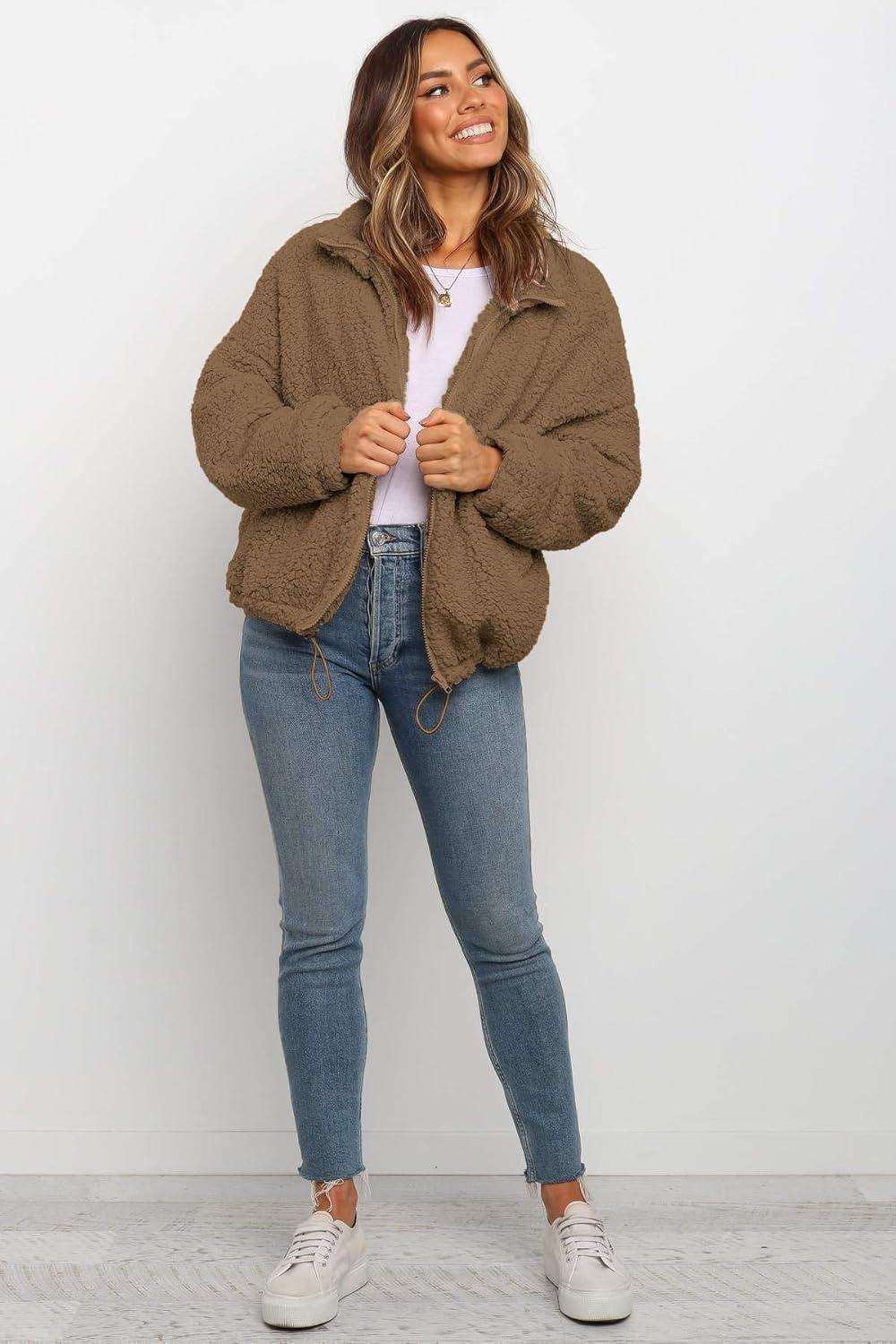 PRETTYGARDEN Women's Fashion Winter Coats Sherpa Fleece Faux Fur Shearling Oversized Trendy Jackets Warm Outerwear Clothing(Style One Khaki)