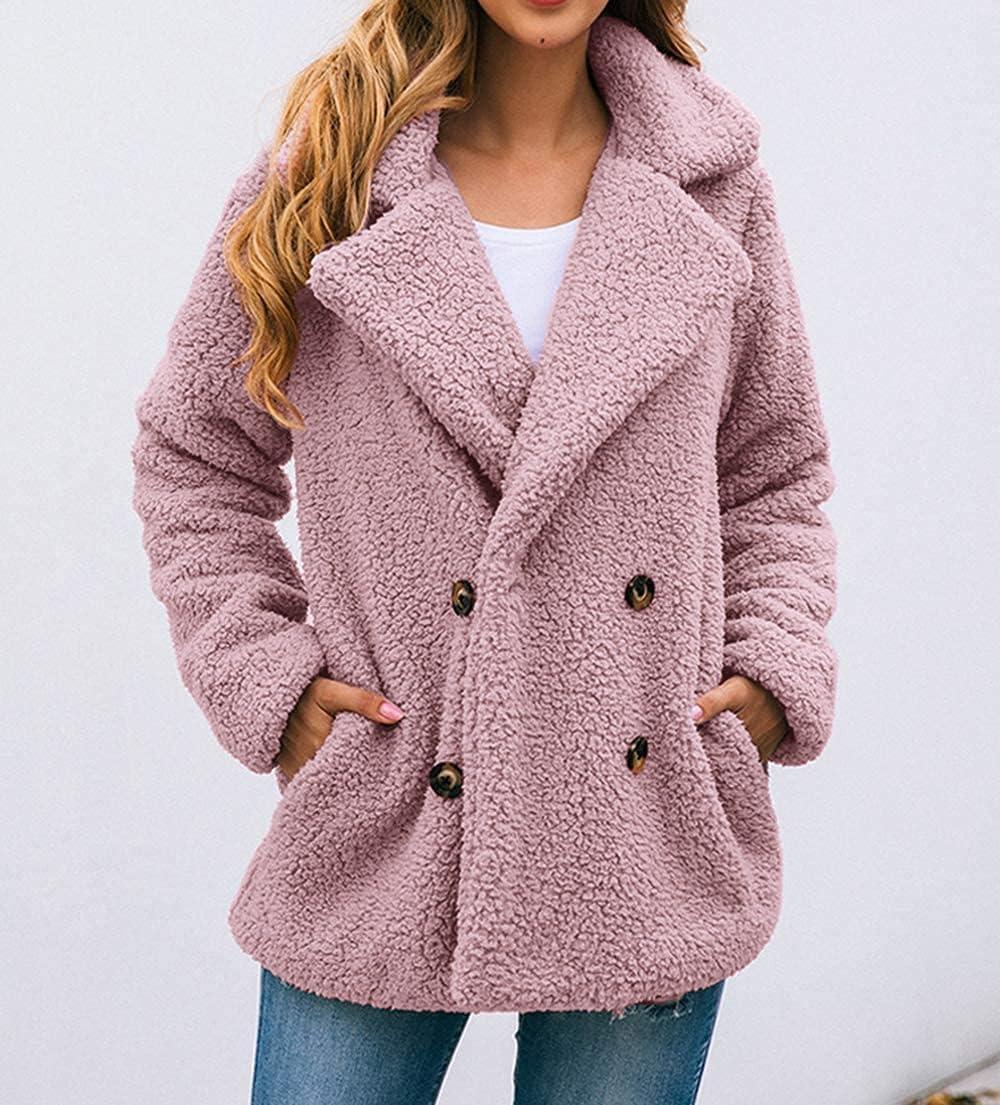 PRETTYGARDEN Women’s Fashion Winter Coats Sherpa Fleece Faux Fur Shearling Oversized Trendy Jackets Warm Outerwear Clothing(Style Two Pink)