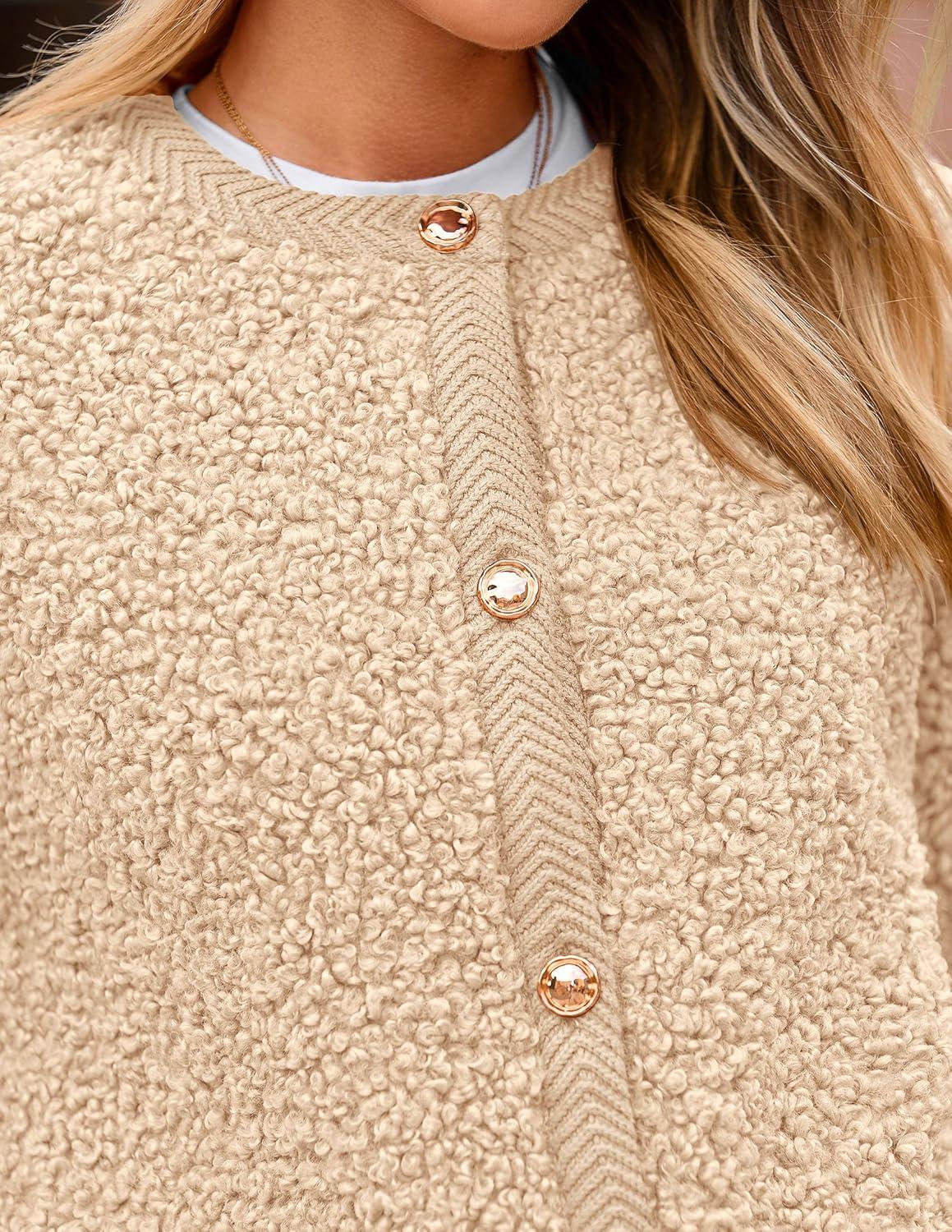 imagePRETTYGARDEN Womens Faux Fur Coat 2025 Fall Fuzzy Fleece Button up Shearling Cropped Jackets Winter Trendy OuterwearBeige