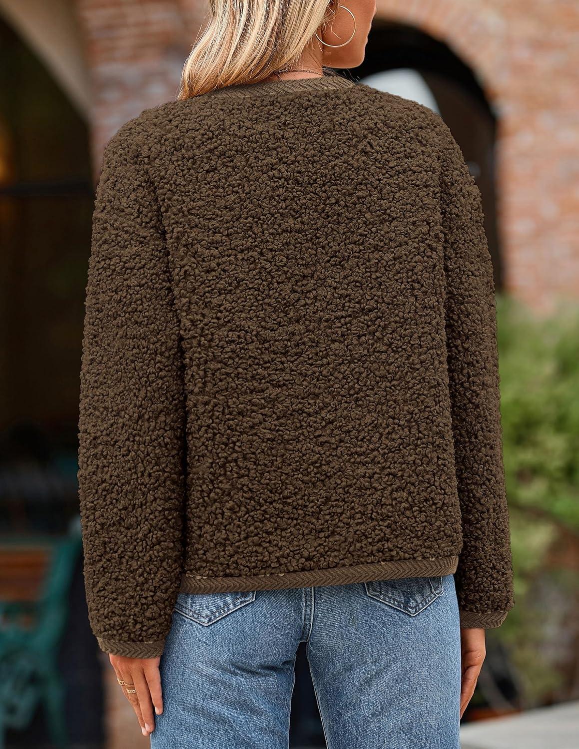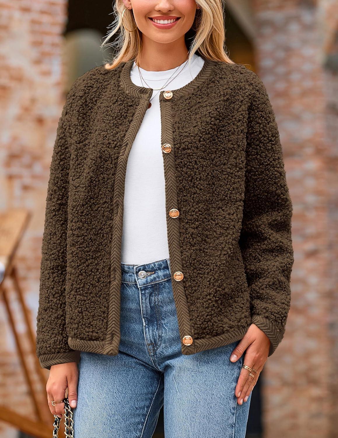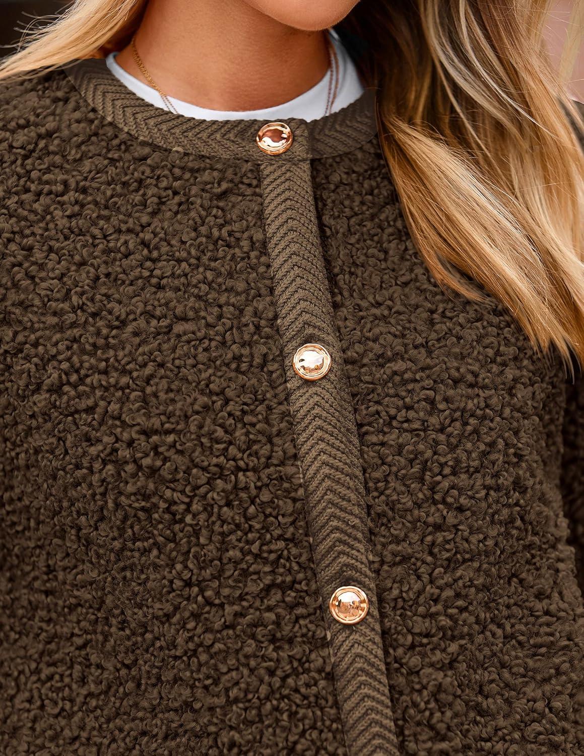 imagePRETTYGARDEN Womens Faux Fur Coat 2025 Fall Fuzzy Fleece Button up Shearling Cropped Jackets Winter Trendy OuterwearCoffee