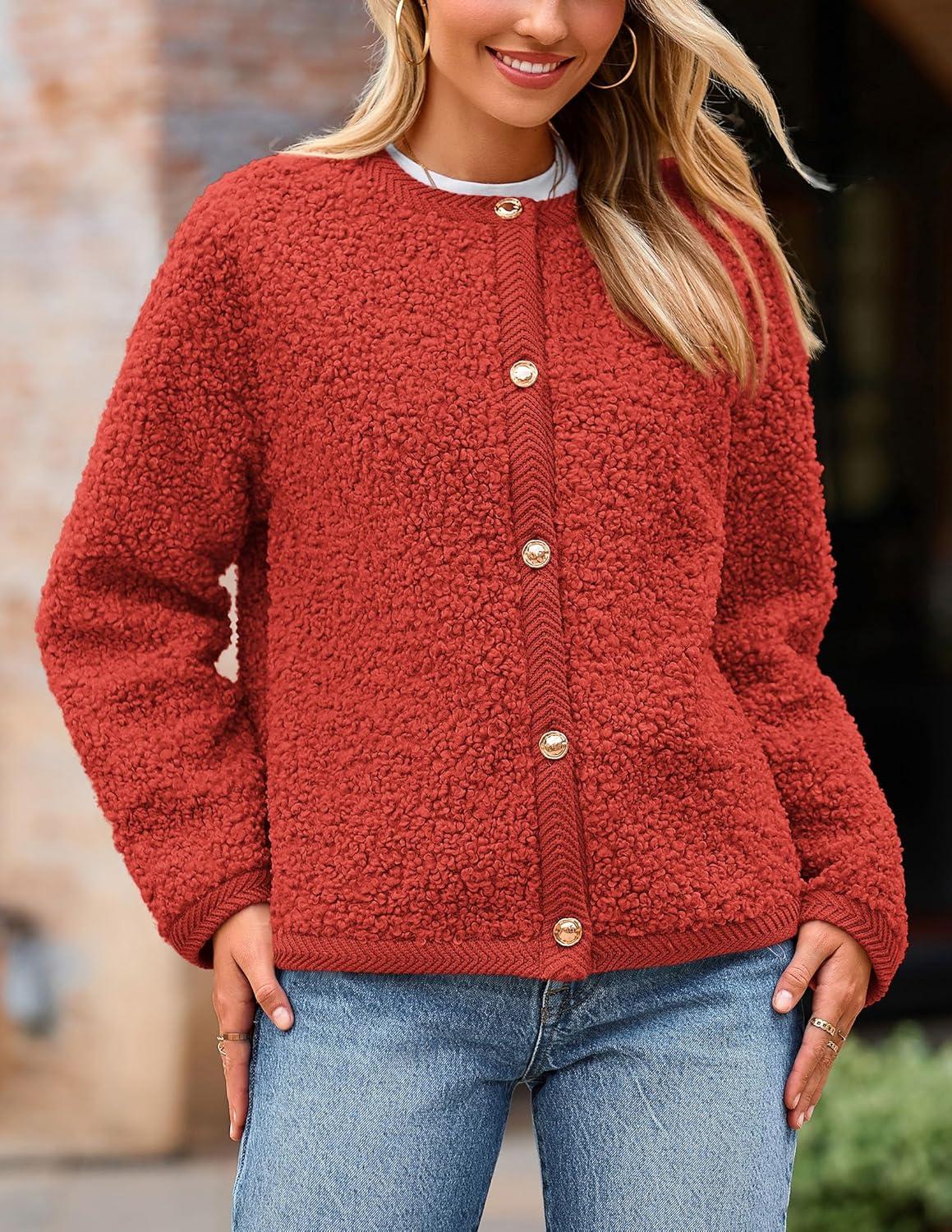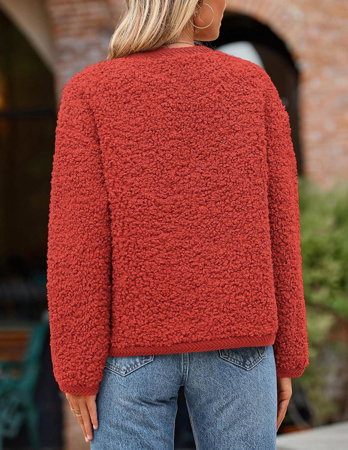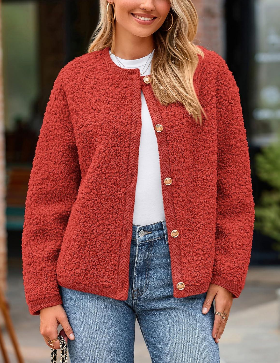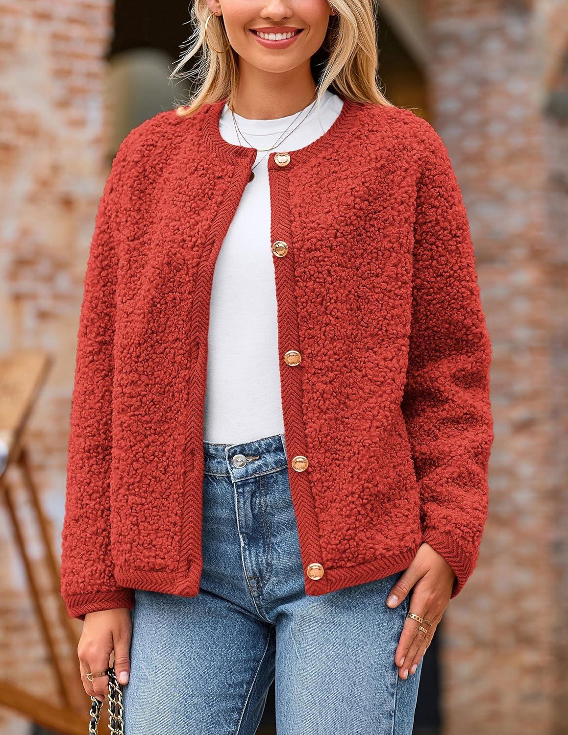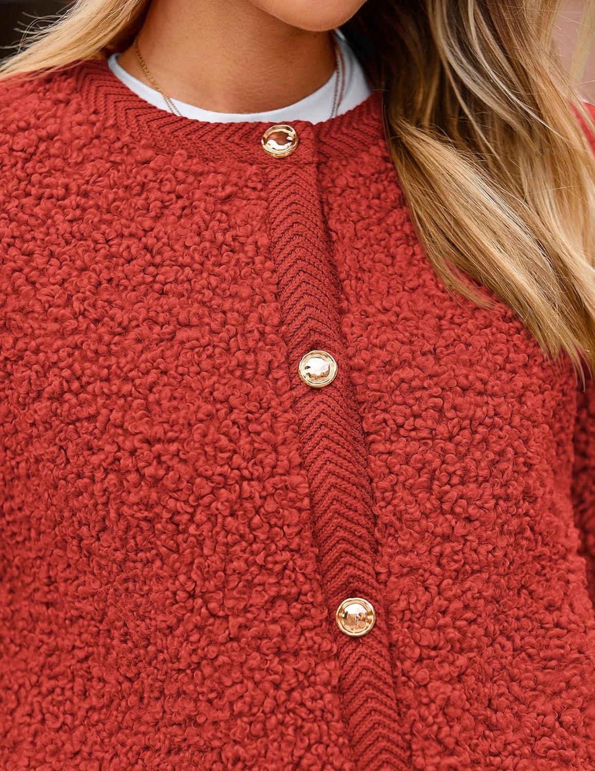 imagePRETTYGARDEN Womens Faux Fur Coat 2025 Fall Fuzzy Fleece Button up Shearling Cropped Jackets Winter Trendy OuterwearRed