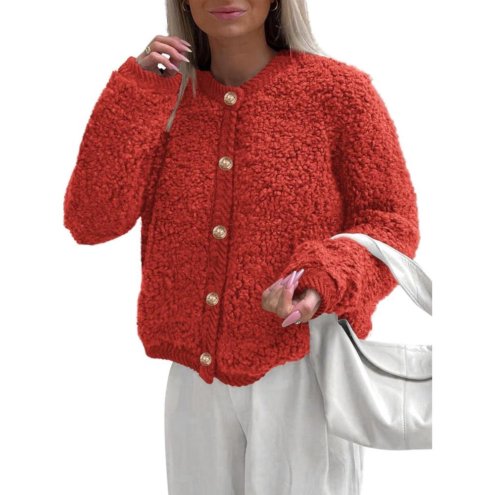 PRETTYGARDEN Women's Faux Fur Coat 2025 Fall Fuzzy Fleece Button up Shearling Cropped Jackets Winter Trendy Outerwear(Red)