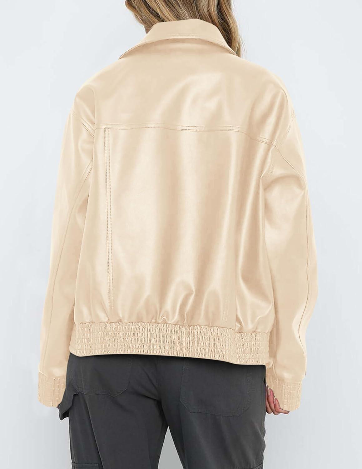 PRETTYGARDEN Women’s Faux Leather Jackets 2025 Fall Long Sleeve Bomber Jacket Zip Up Motorcycle Coats Winter Clothes(Beige White)